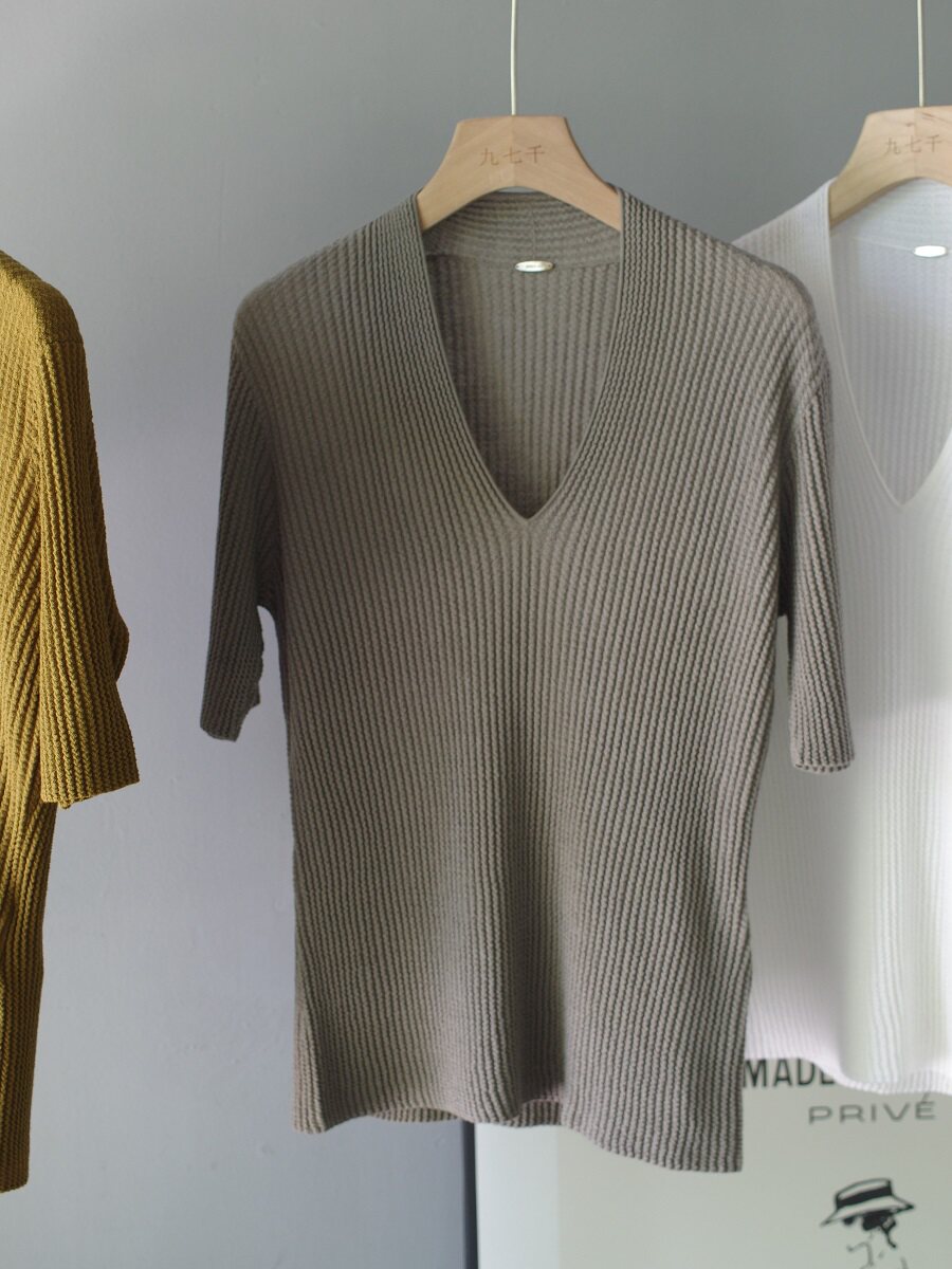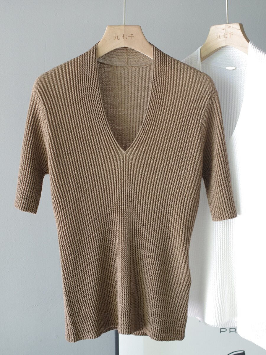 👕今日入手了一件超级心仪的“扬子纱V领褶皱中袖美丽诺羊毛针织衫”,真的是一见钟情!这款修身短袖上衣简直太美了,让我忍不住想要分享给大家!
