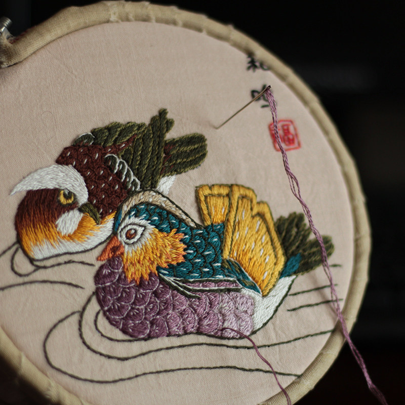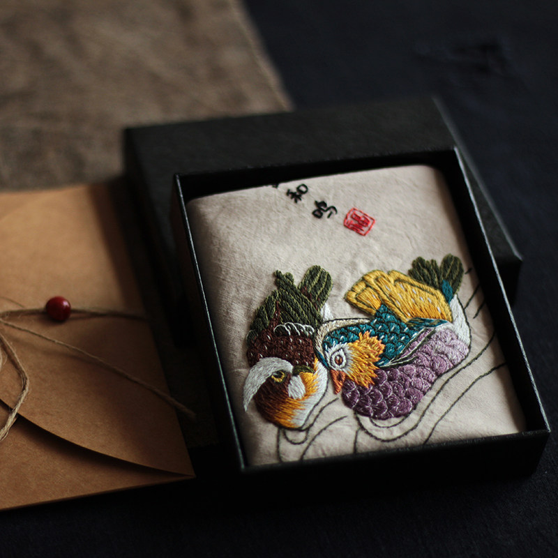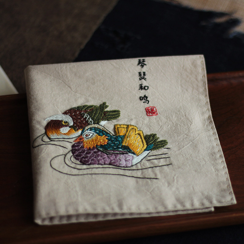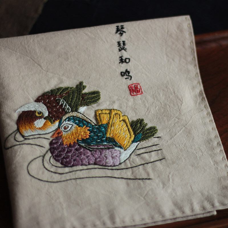 📚 琴瑟和鸣 鸳鸯手工刺绣手帕diy材料包女士吸汗纯棉手绢情人节礼物