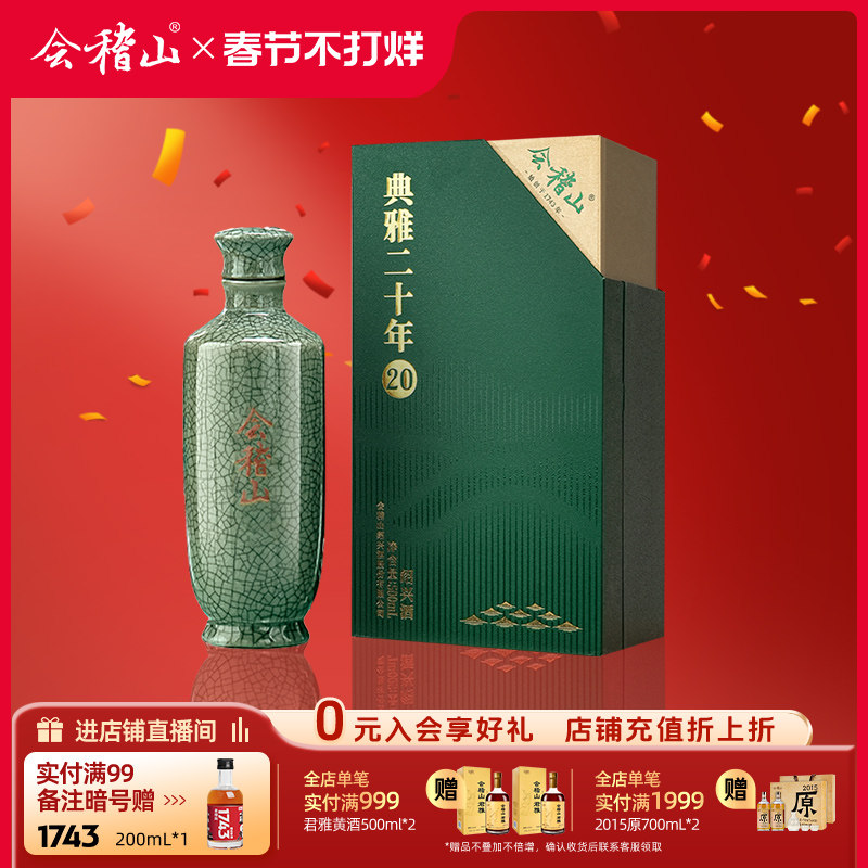 📚 【年货礼盒】会稽山黄酒绍兴黄酒 礼盒青瓷二十年陈花雕500ml高端