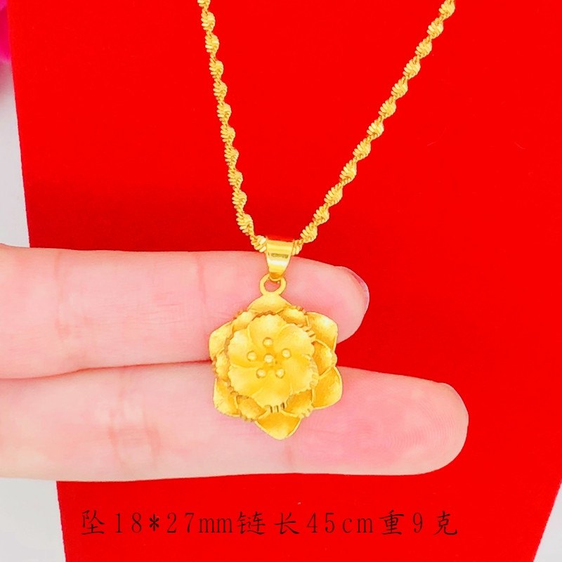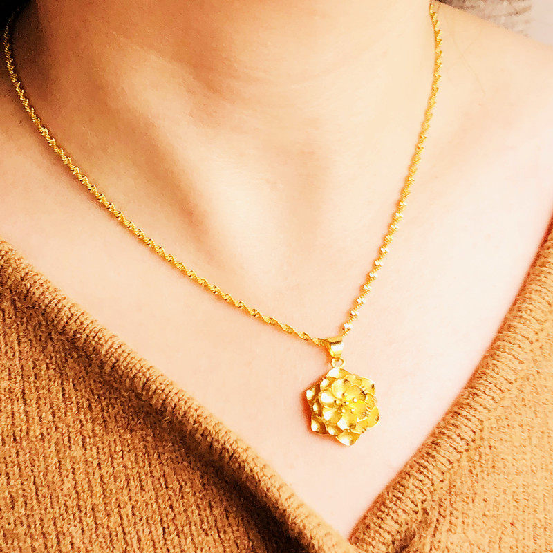 📚 新款沙金项链女铜镀金仿金花朵四叶草项坠黄金色银杏叶锁骨链首饰