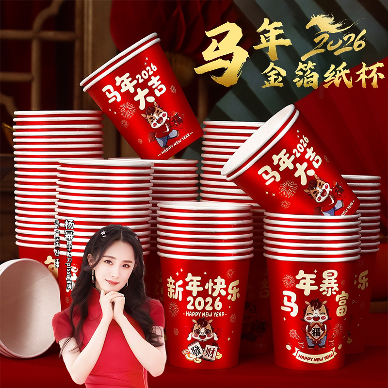 📚 2026马年纸杯一次性杯子年货过新年家用喜庆加厚水杯春节过年整箱