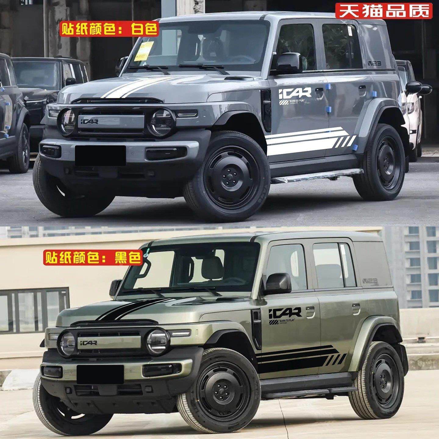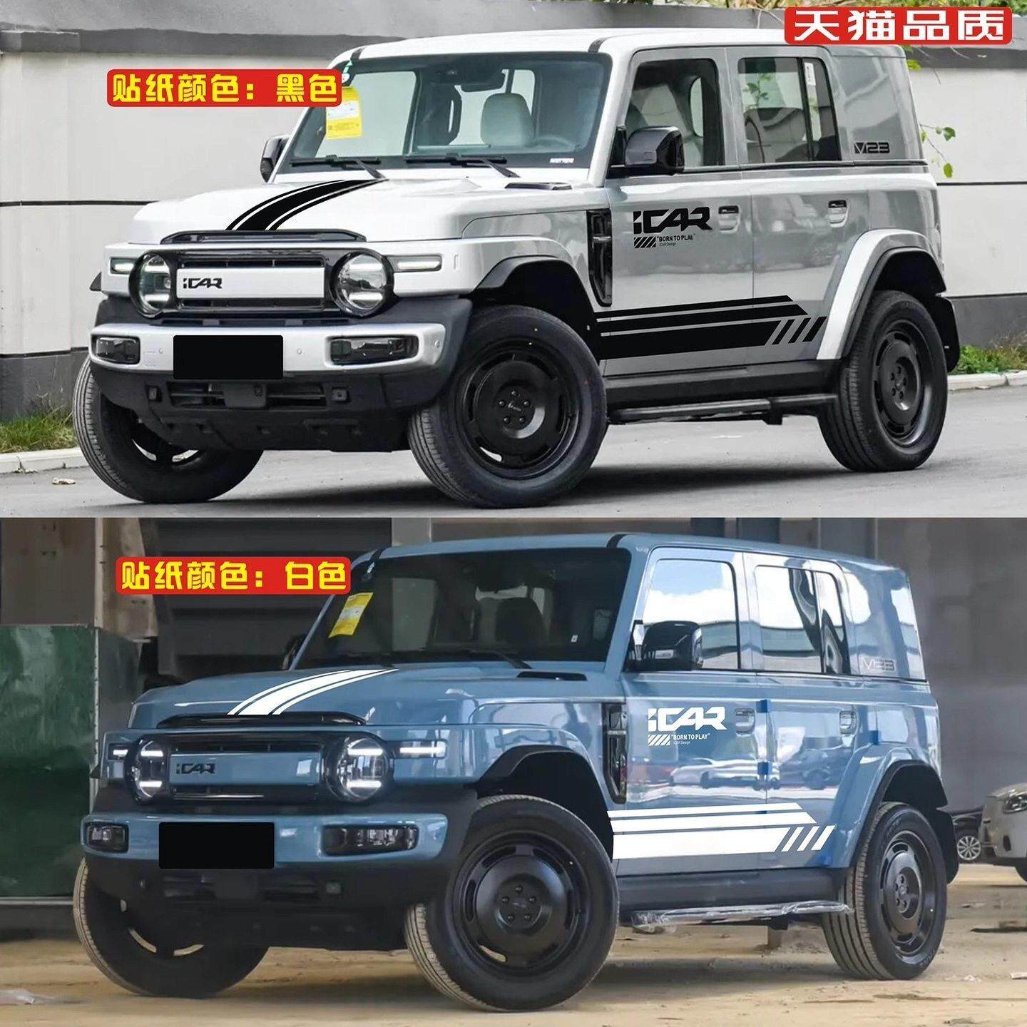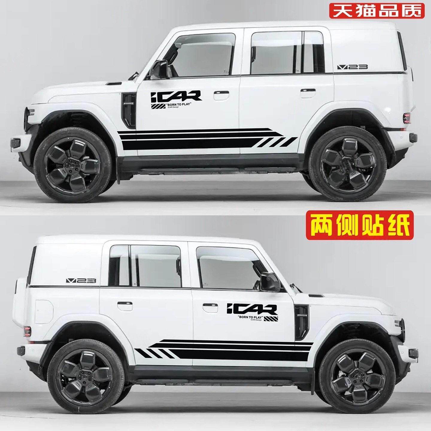 📚 适用于奇瑞iCAR V23车贴拉花 V23改装车身装饰引擎盖侧裙彩条贴纸
