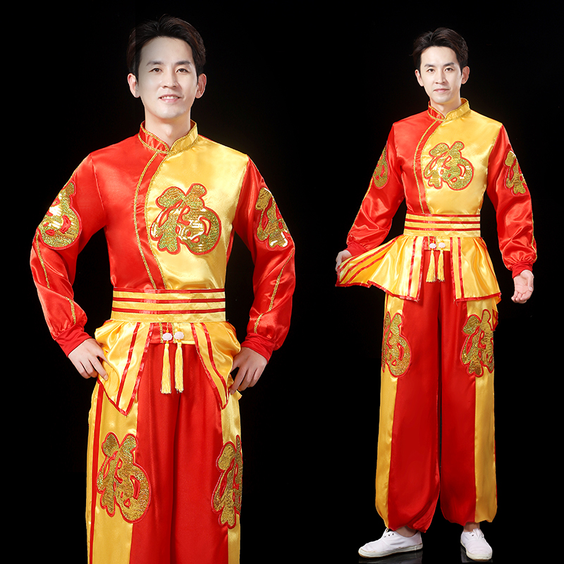 📚 新款打鼓服男秧歌服古典舞演出服中国风民族舞蹈扇子舞开场舞服