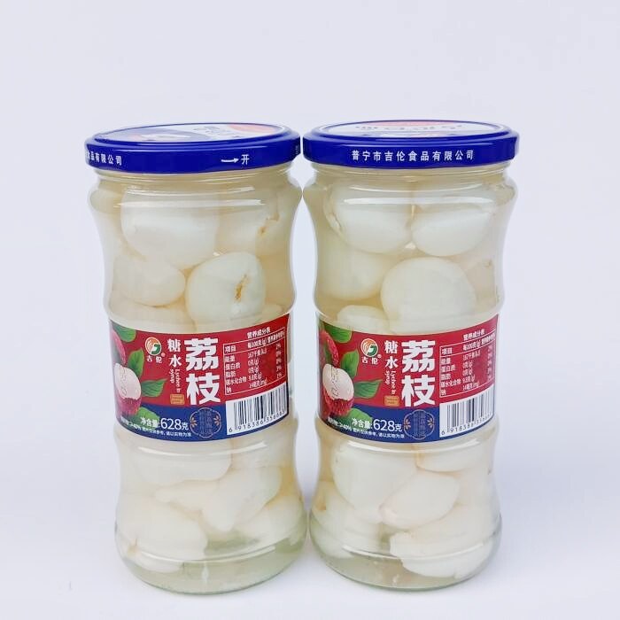 📚 吉伦荔枝罐头368克新鲜荔枝广东糖水628玻璃瓶装整箱商用水果罐头