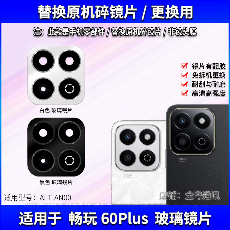 📚 适用于荣耀畅玩60Plus后置摄像头玻璃镜片 手机照相机镜面镜头盖