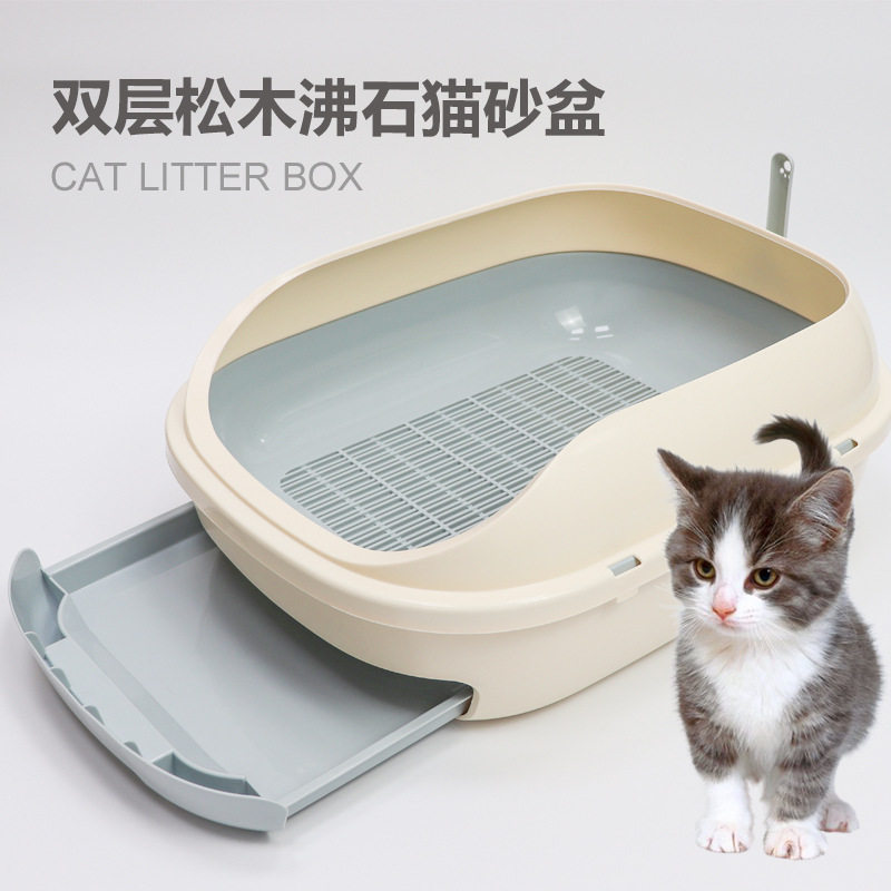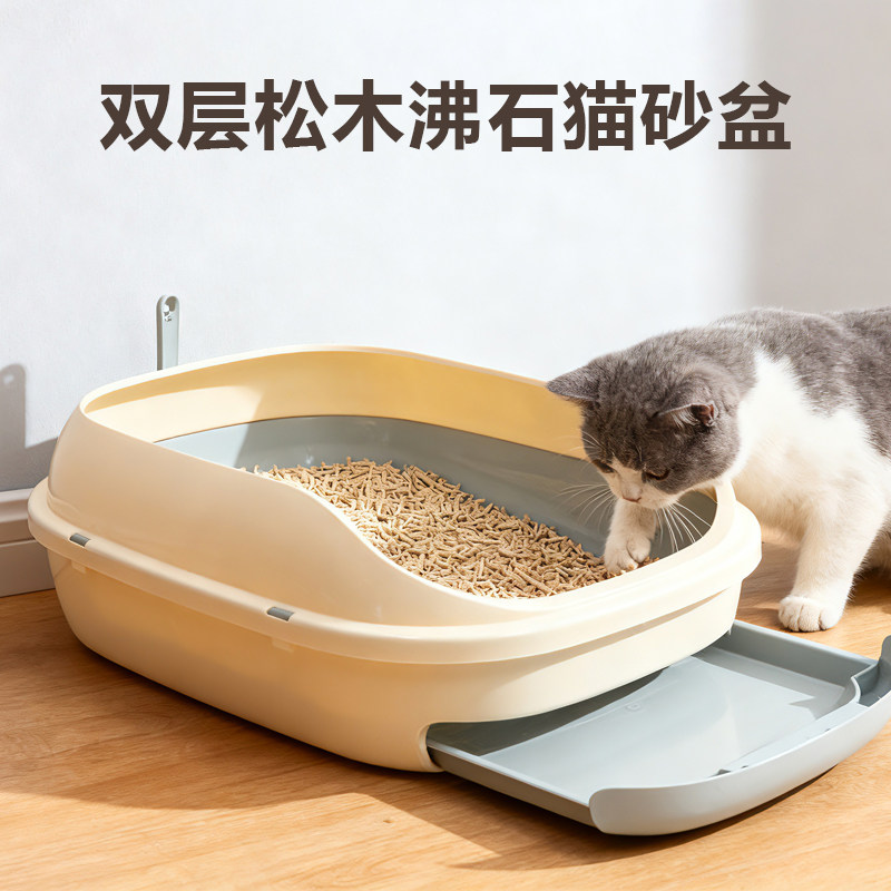 📚 松木沸石猫砂盆双层抽屉式特大号防外溅猫厕所沙盆猫咪屎盆猫便盆