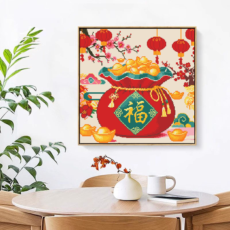 📚 珠绣十字绣全珠子绣代代福福袋福字卧室新款串珠绣圆珠彩珠绣满绣
