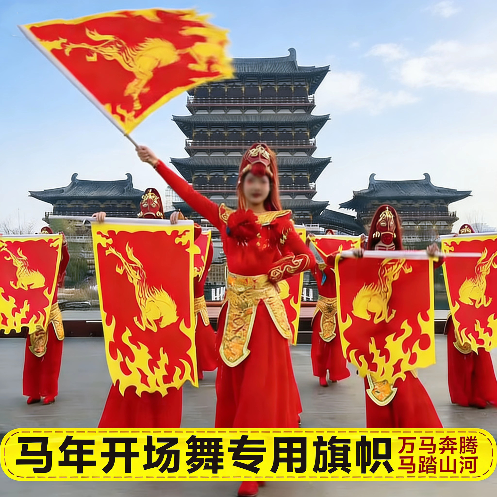 📚 马年开场舞旗子万马奔腾专用手持旗帜舞蹈道具舞台演出火焰旗定做
