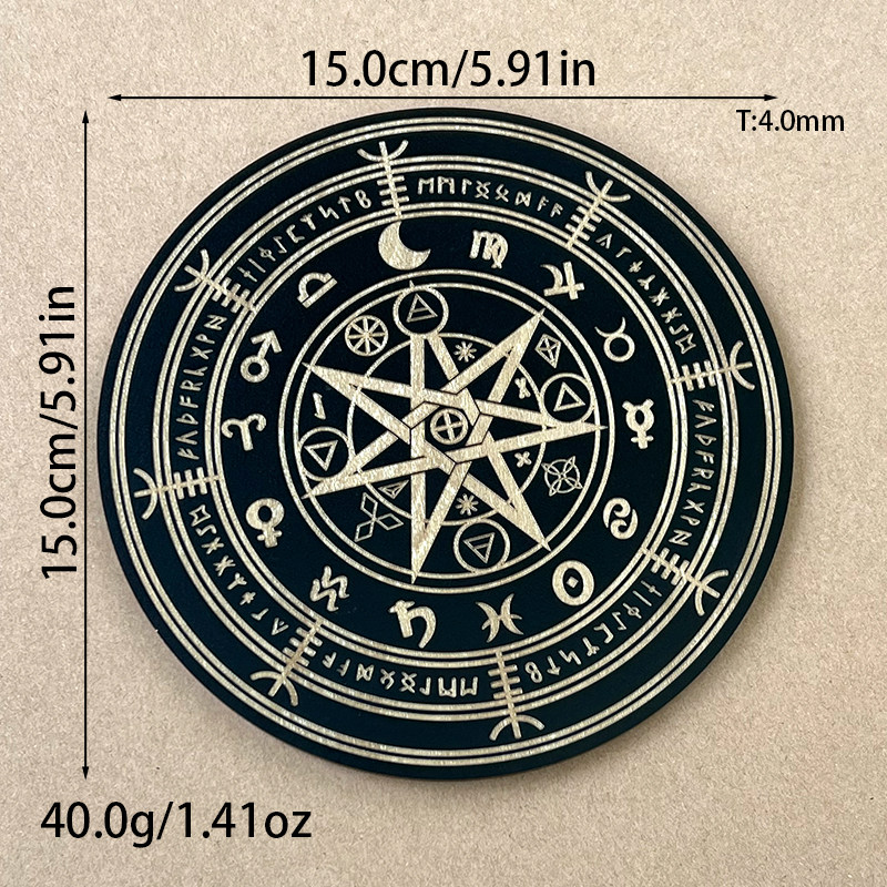 📚 灵摆表盘木质指示雕刻纹理七星能量板灵调频水晶底座月牙星座