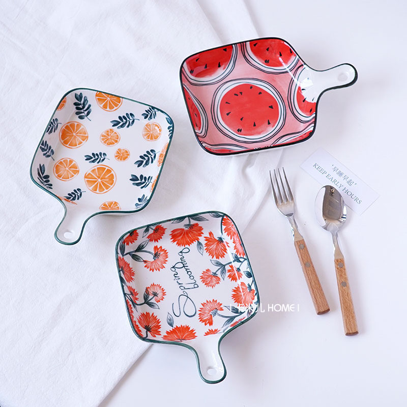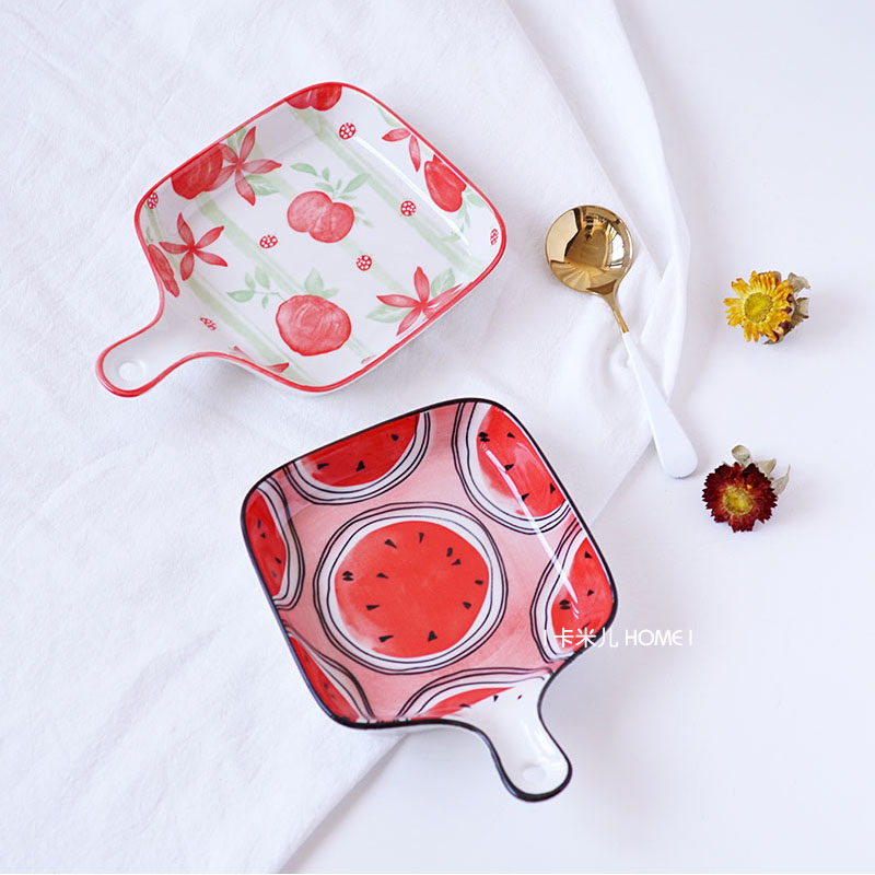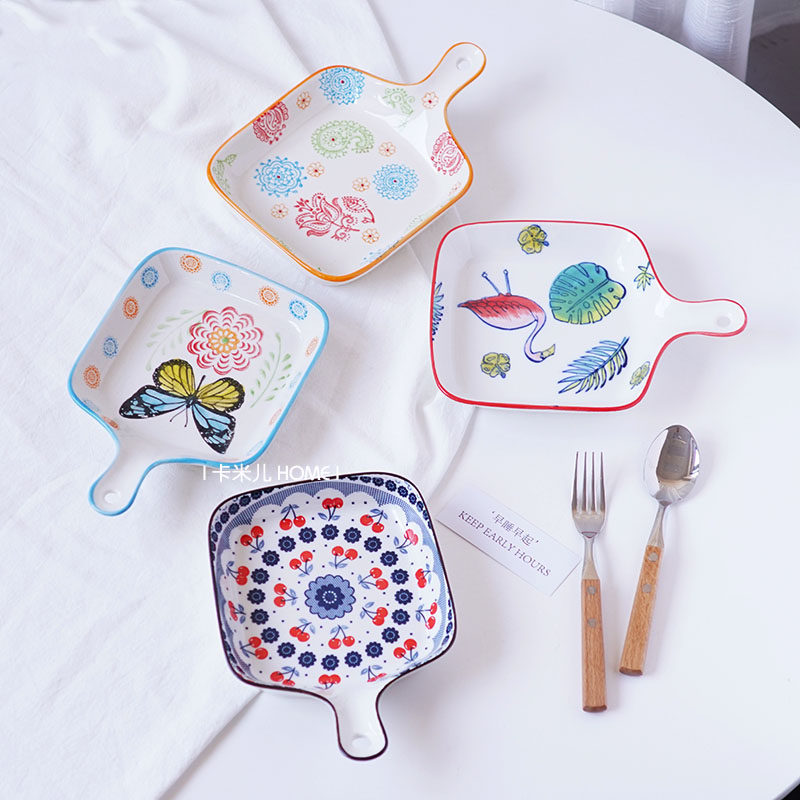 📚 北欧单柄烤盘带手柄陶瓷日式西餐烤碗意面菜盘焗饭烤盘微波炉专用