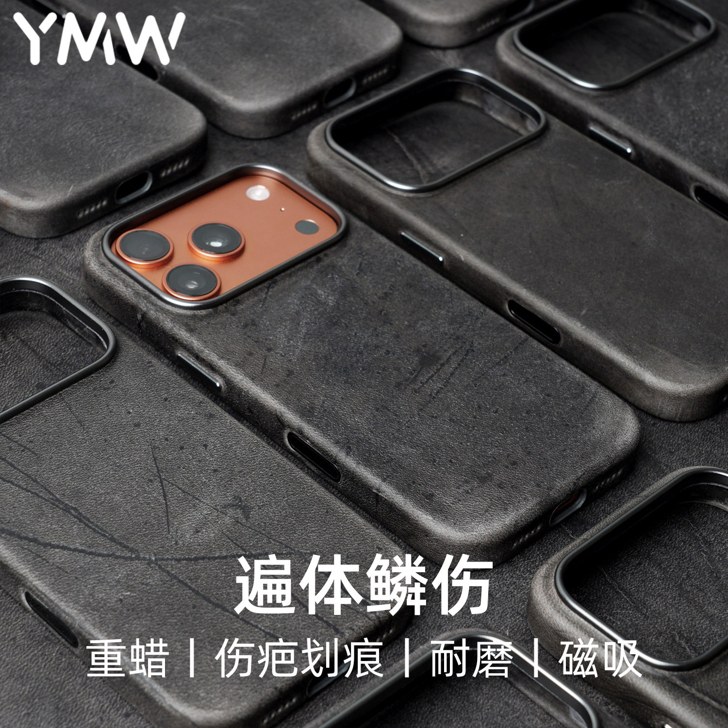 📚 YMW重伤疤疯马牛皮适用苹果iphone17/16promax手机壳磁吸复古真皮高端可盘高级保护皮套