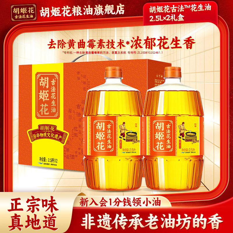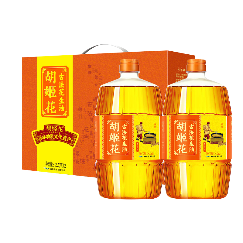📚 胡姬花古法花生油2.5L*2礼盒装食用油炒菜压榨福利团购