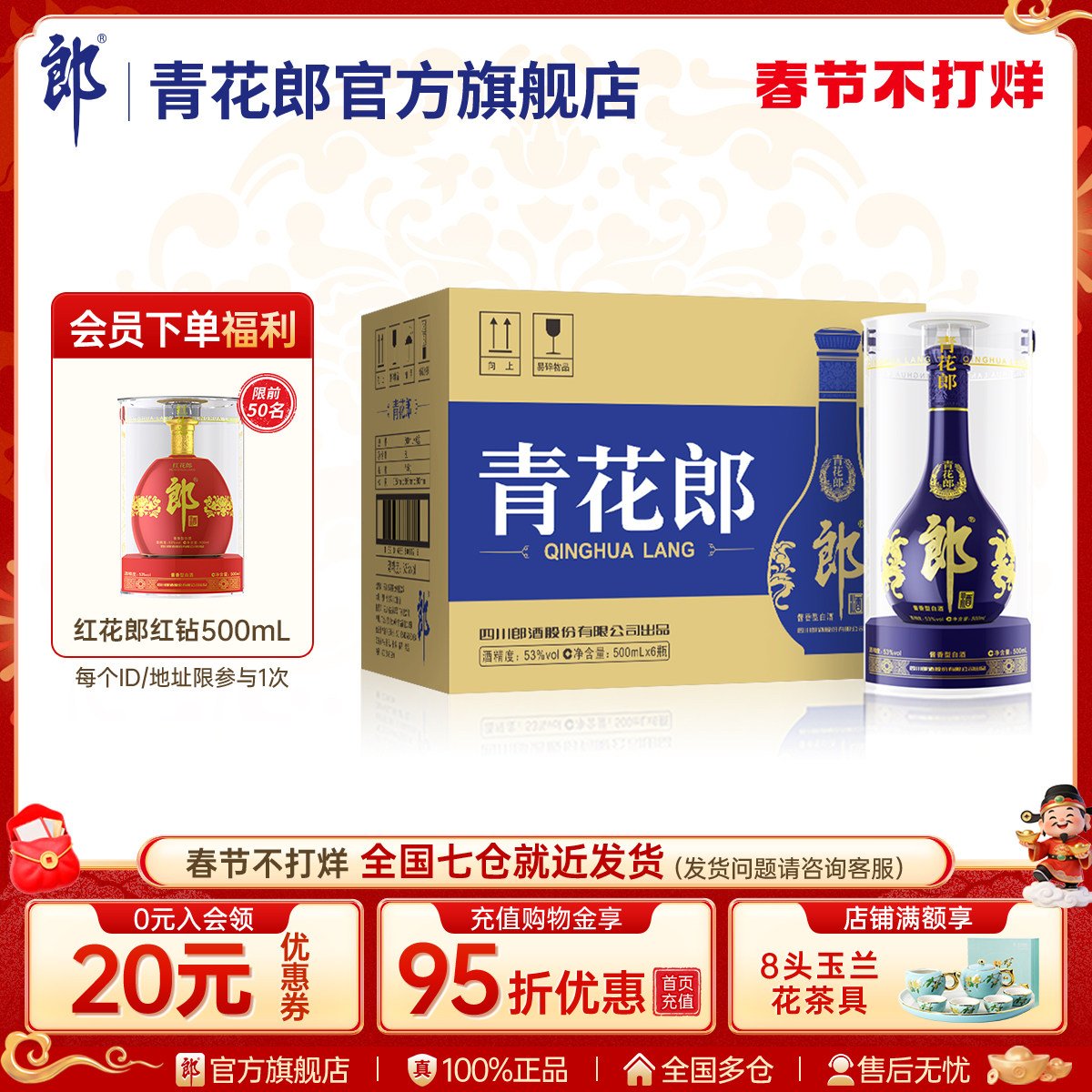 📚 郎酒 青花郎53度酱香型高档白酒 6瓶整箱官方旗舰店正品商务宴请