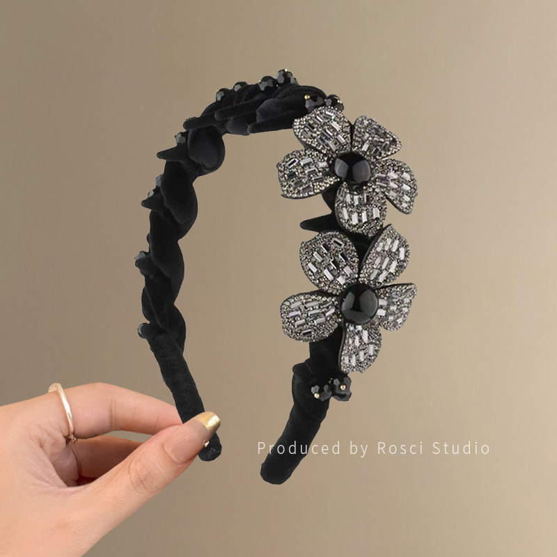 📚 韩系高级感轻奢水钻花朵发箍女2026新款高颅顶头箍丝绒压发卡发捆