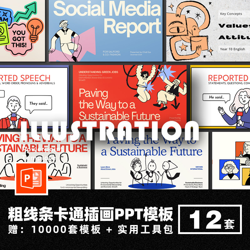📚 粗线条卡通插画PPT模版个人简历项目汇报简介绍毕业答辩教学课件