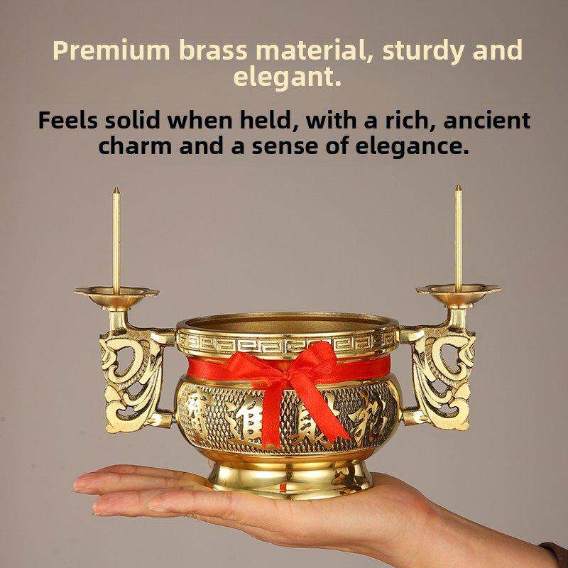 📚 纯黄铜香炉上香家用供奉蜡烛台座一体室内烧香供炉供佛敬神香薰炉
