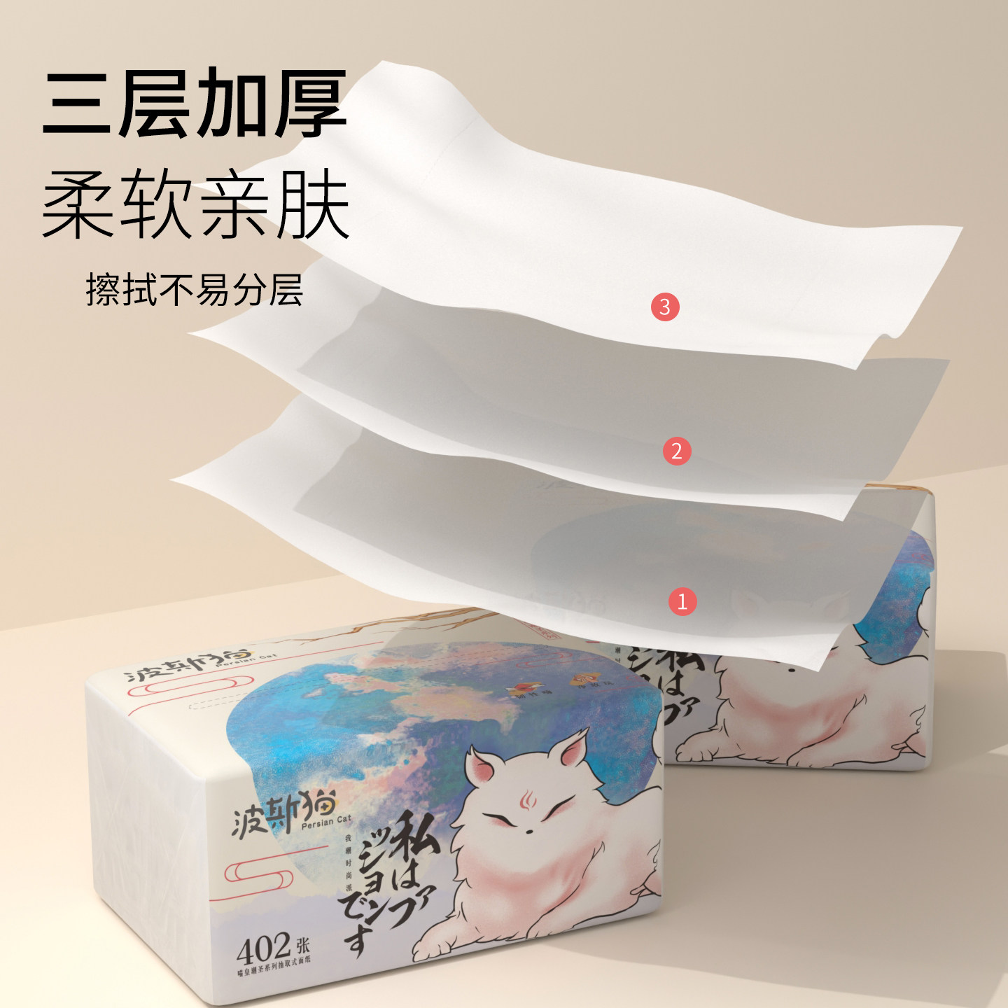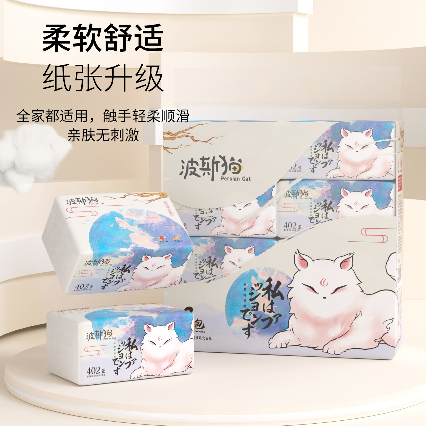 📚 波斯猫喵皇402张面巾纸大包抽纸卫生纸家用实惠餐巾纸擦手纸巾