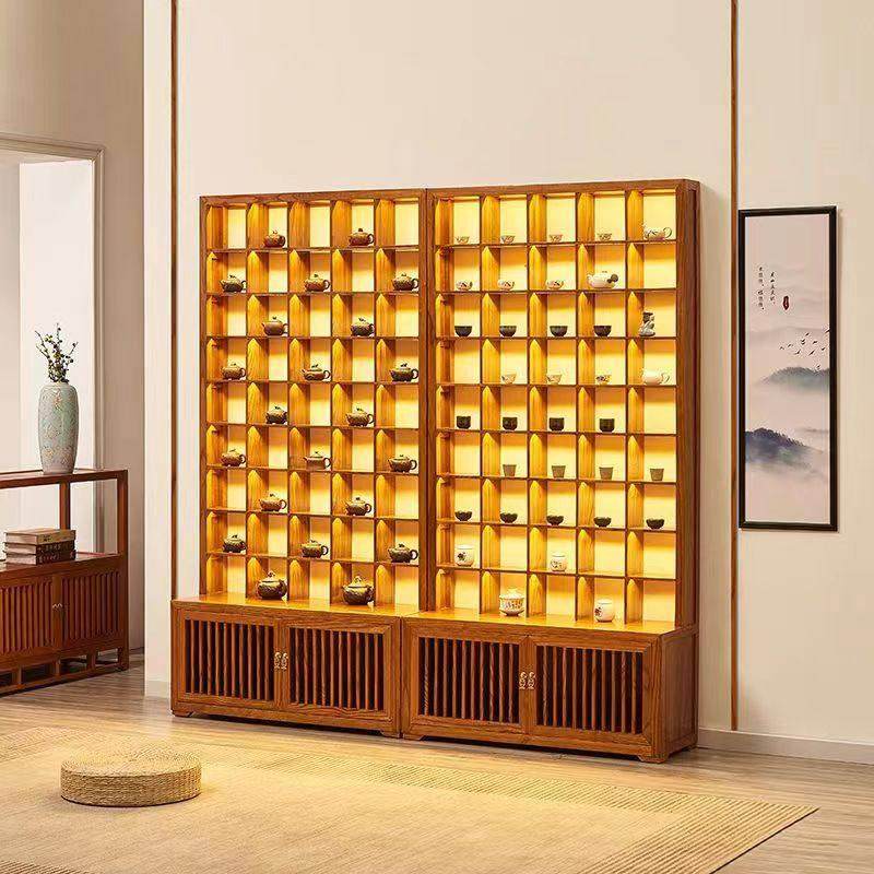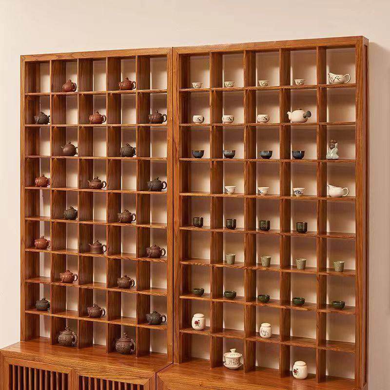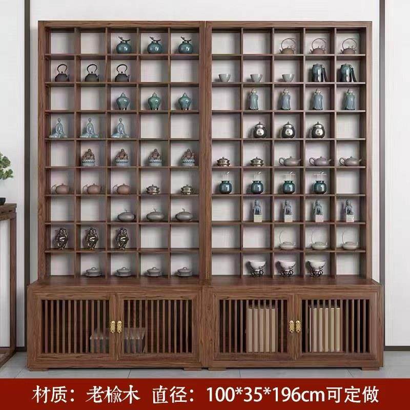 📚 实木紫砂壶展示架茶具茶杯格子收纳展示玻璃柜老榆木多宝格博古架