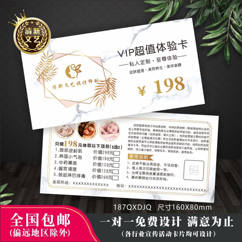📚 代金券定制优惠券制作设计现金抵用劵洗车卡美容院体验券打印名片
