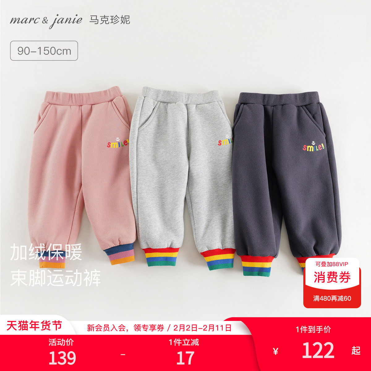 📚 【加厚绒】马克珍妮男女童彩色条纹保暖运动裤儿童裤子冬装241659