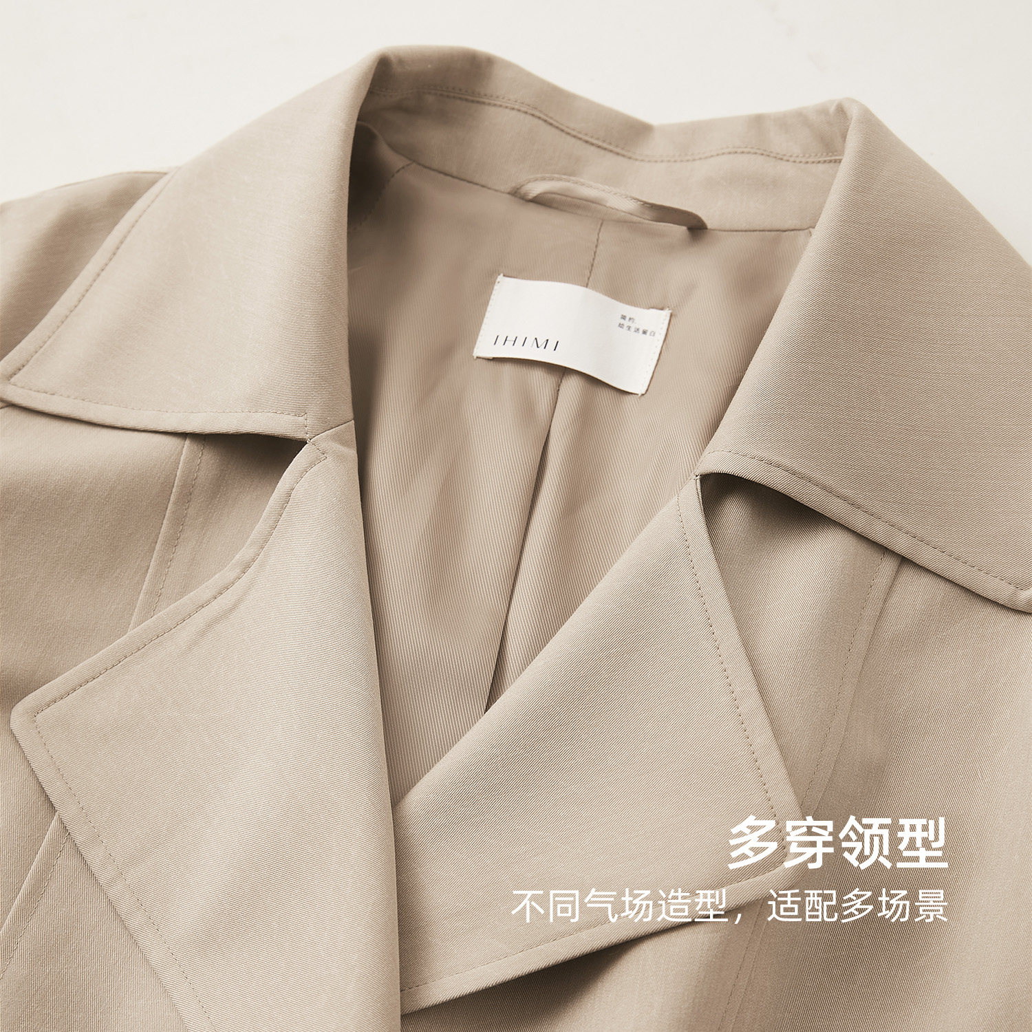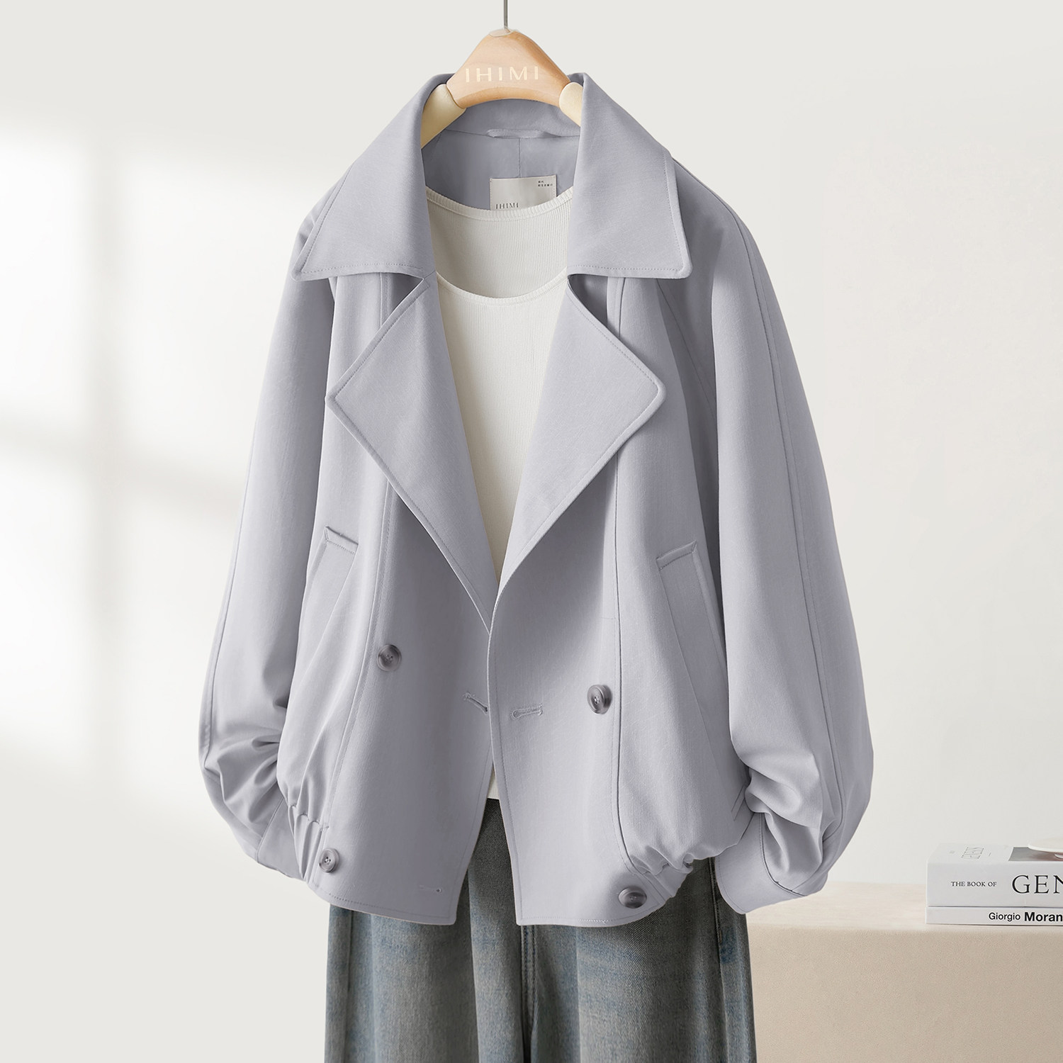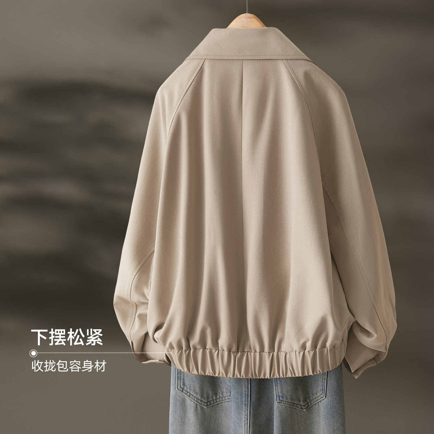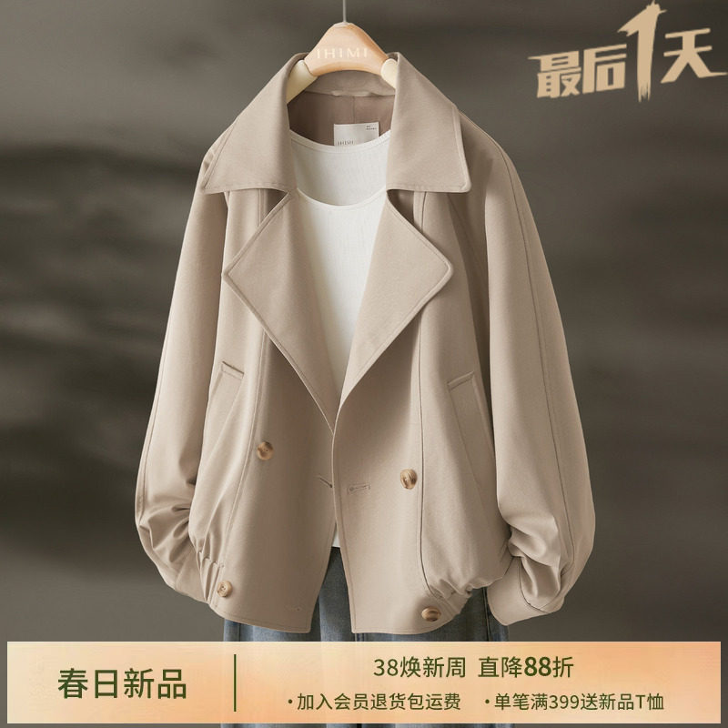 📚 IHIMI海谧老钱风拼接松紧下摆夹克外套女款春季宽松显瘦短款风衣