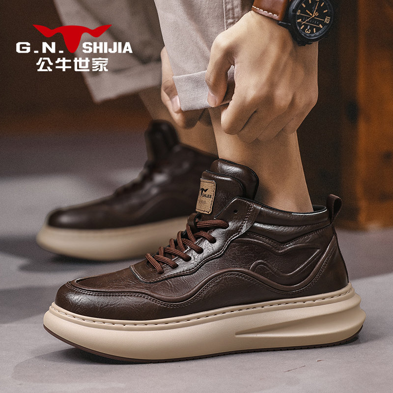👟入手体验:公牛世家冬季高帮男鞋,真皮的质感,厚底的增高效果,简直太赞了!👏