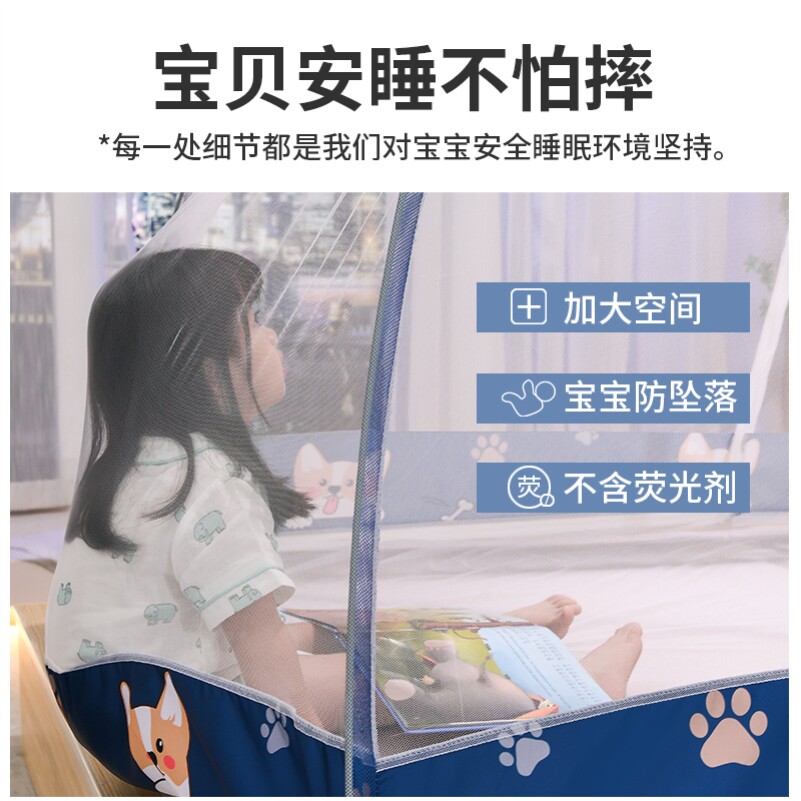 📚 防止掉床儿童房一米二床单人床1米8乘2米的蚊帐防摔回底拆叠文账