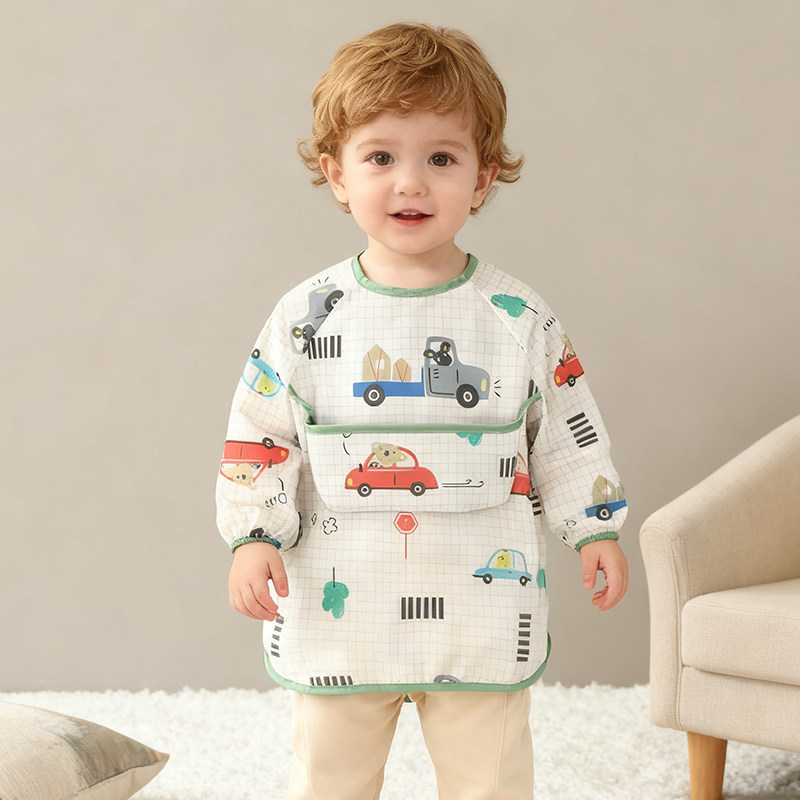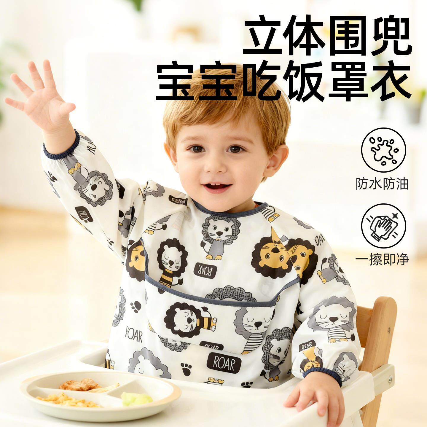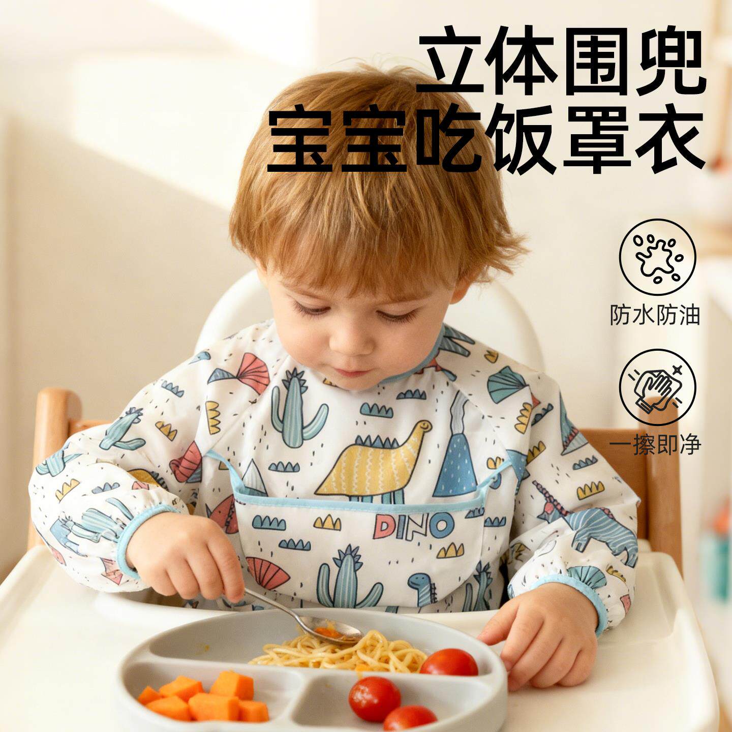 📚 儿童罩衣宝宝吃饭围兜防水防油男女宝自主进食围裙可外穿长袖护衣