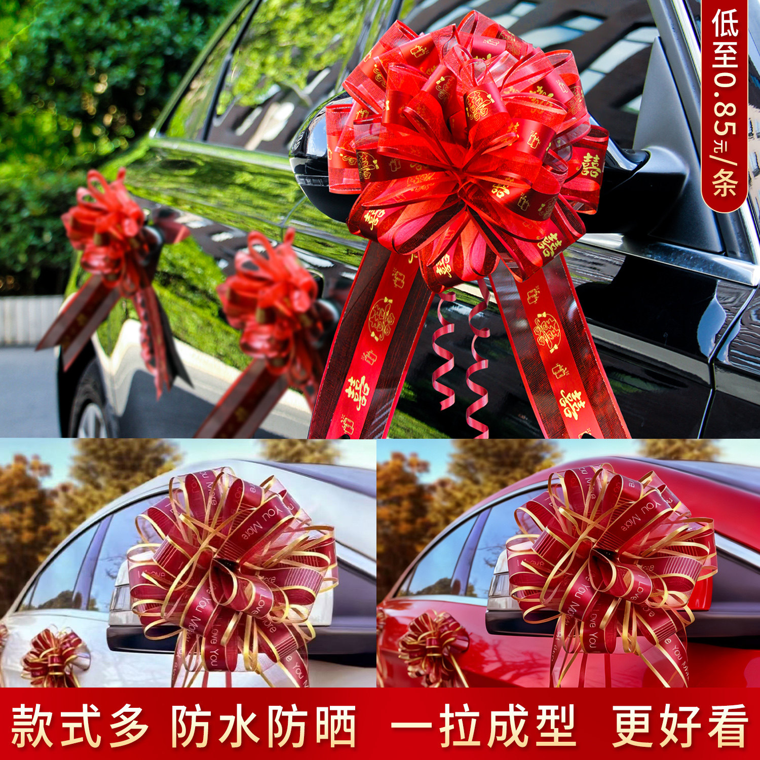 💒惊艳全场!新款婚车车队装饰拉花彩带彩条喜字车头,全套婚礼用品大揭秘🎉