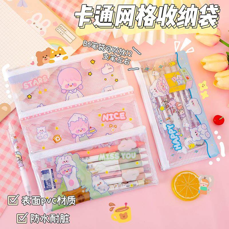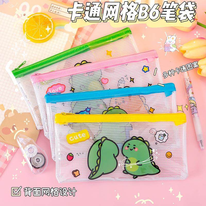 📚 创意B6透明网纱考试笔袋 便携简约大容量学生文具拉链袋化妆包收
