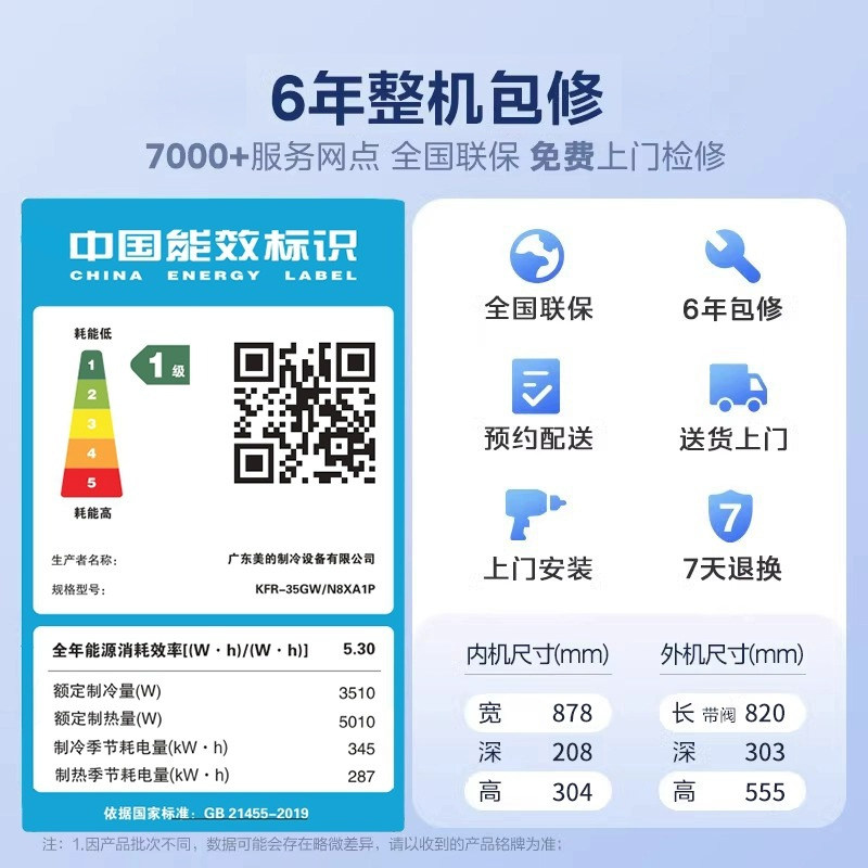 📚 美的空调冷静星三代大1.5匹一级挂机冷暖变频防直吹酷清凉
