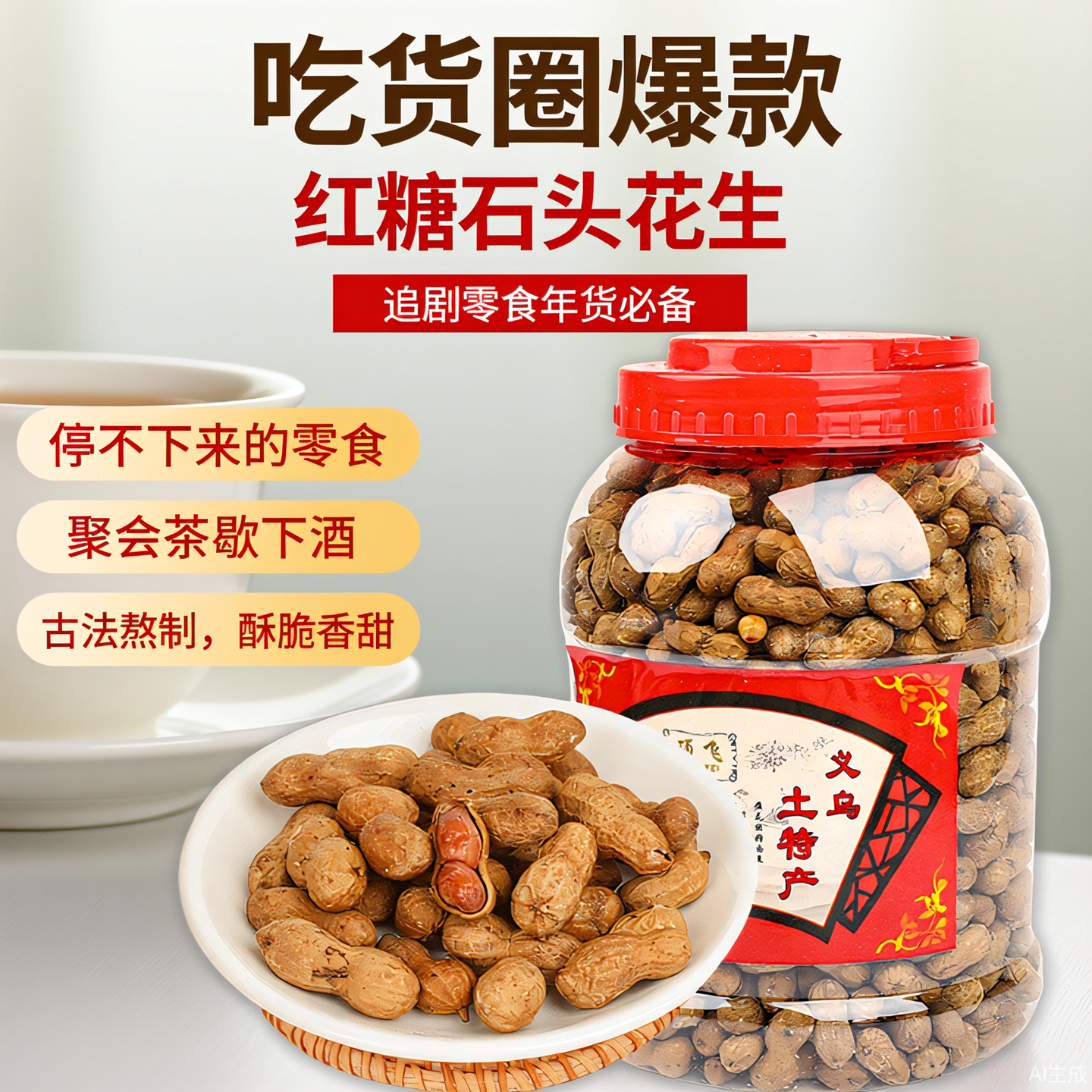 📚 爆款新货特产红糖味石头花生米小粒陈皮核桃带壳烘干焦糖果熟零食