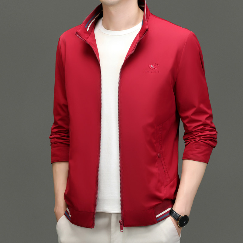 📚 中年爸爸春秋冬装衣服外套喜公公婚礼服婚宴装夹克红色本命年龙年