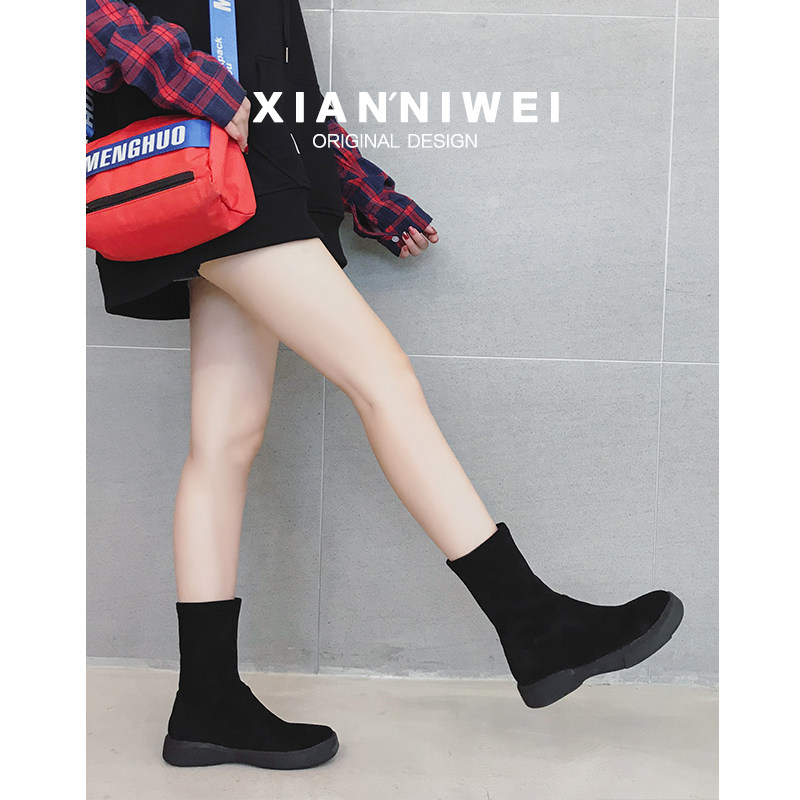 📚 小码瘦瘦袜子靴短靴子女2025春秋单靴新款显瘦单靴马丁弹力袜筒靴