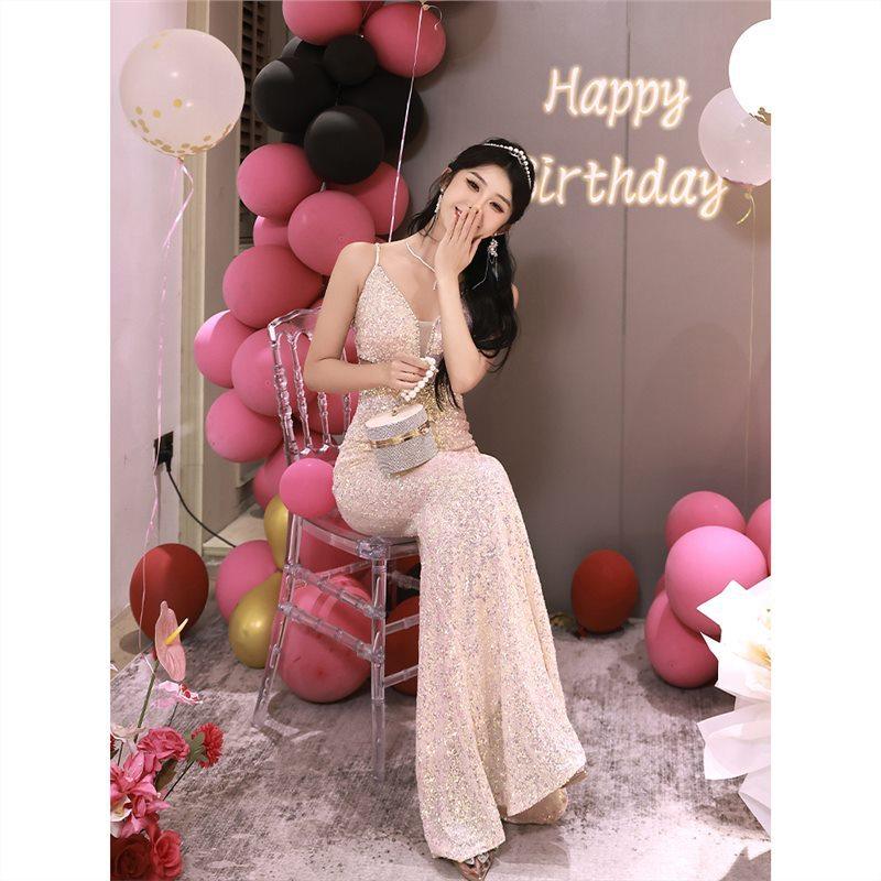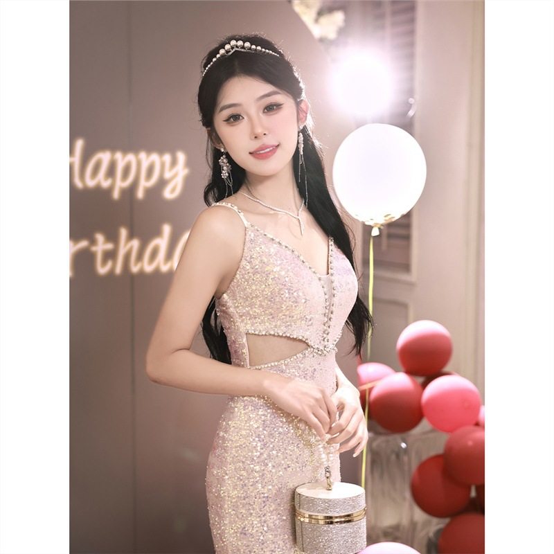 📚 晚礼服女宴会气质裙小众优雅名媛生日艺考闪闪亮片高级感礼服批发