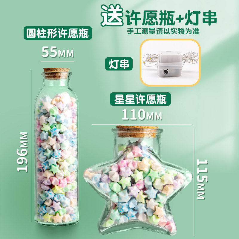 📚 夜光星星折纸玻璃瓶子星星纸折星星专用纸叠星星折纸条幸运星送装小星星的玻璃罐折五角星的渐变发夜光手工