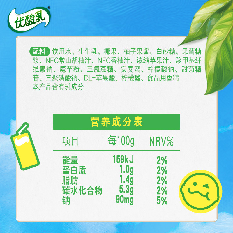 📚 【新品上市】伊利旗舰店优酸乳双柚果粒饮品200g*12盒含乳饮料