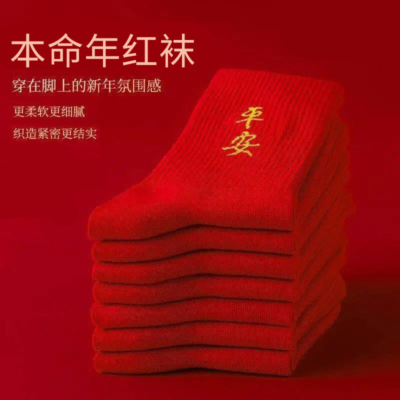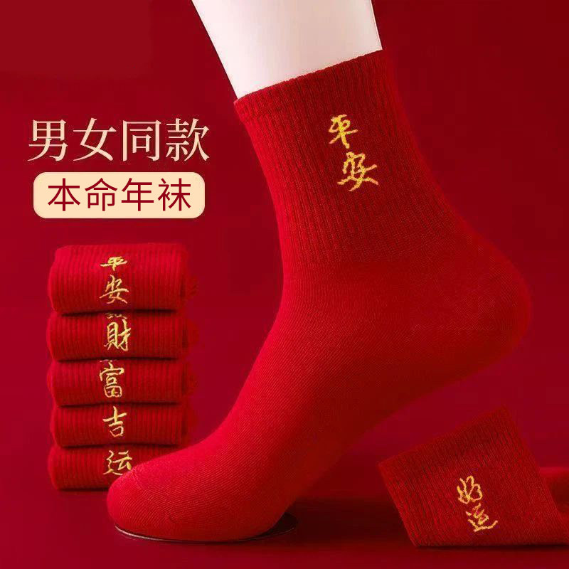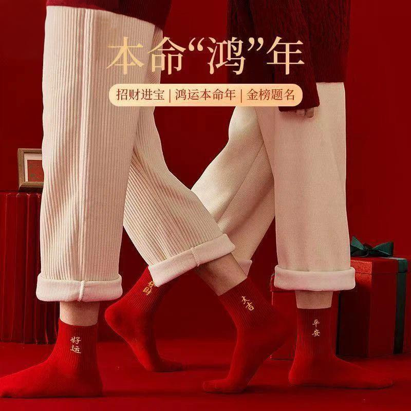 📚 本命年2026袜子中筒马年新年礼物秋冬款男女士红色袜子发财长筒袜