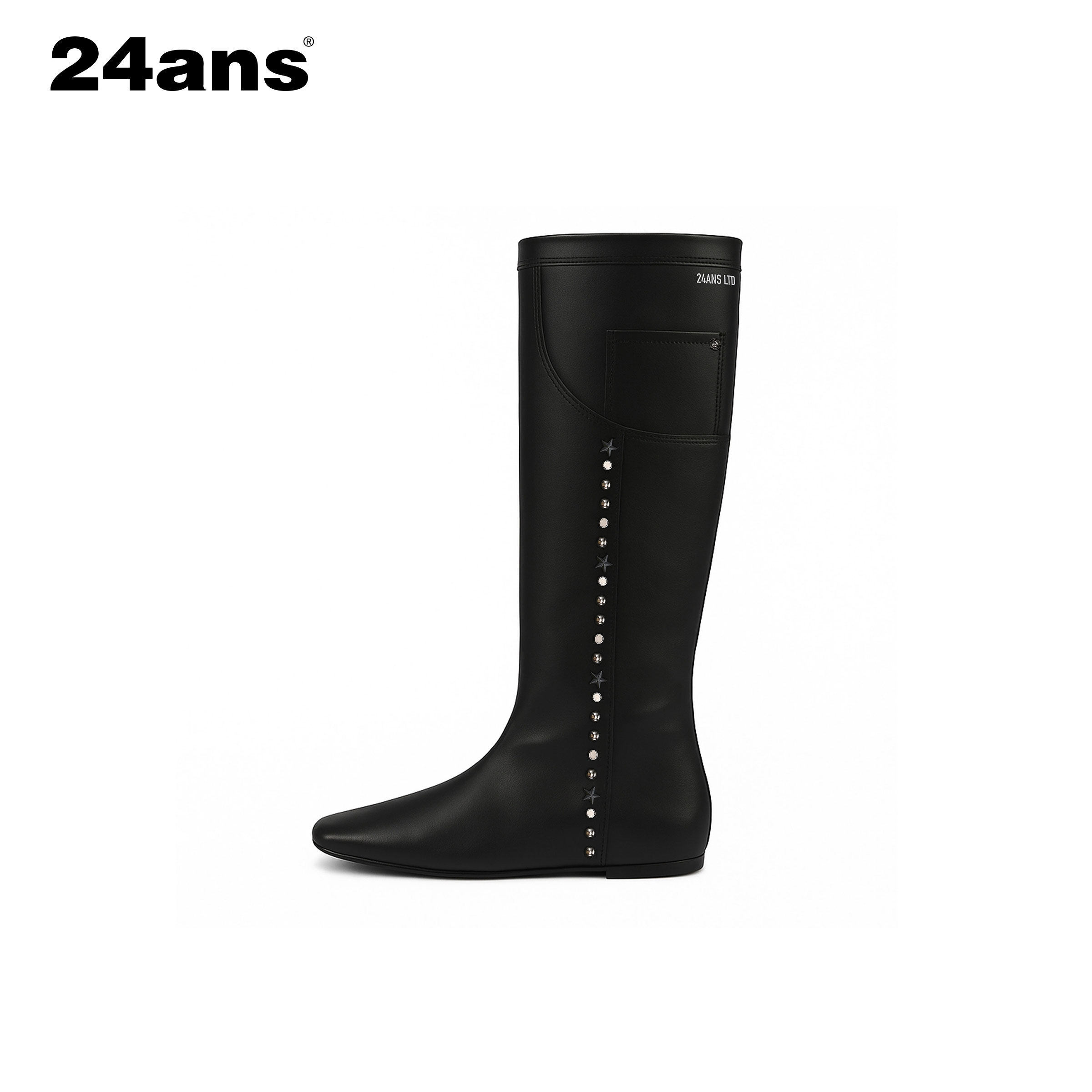 📚 24ANS LTD 平底来了! 百搭方头裤兜口袋铆钉平底靴内含增高鞋垫