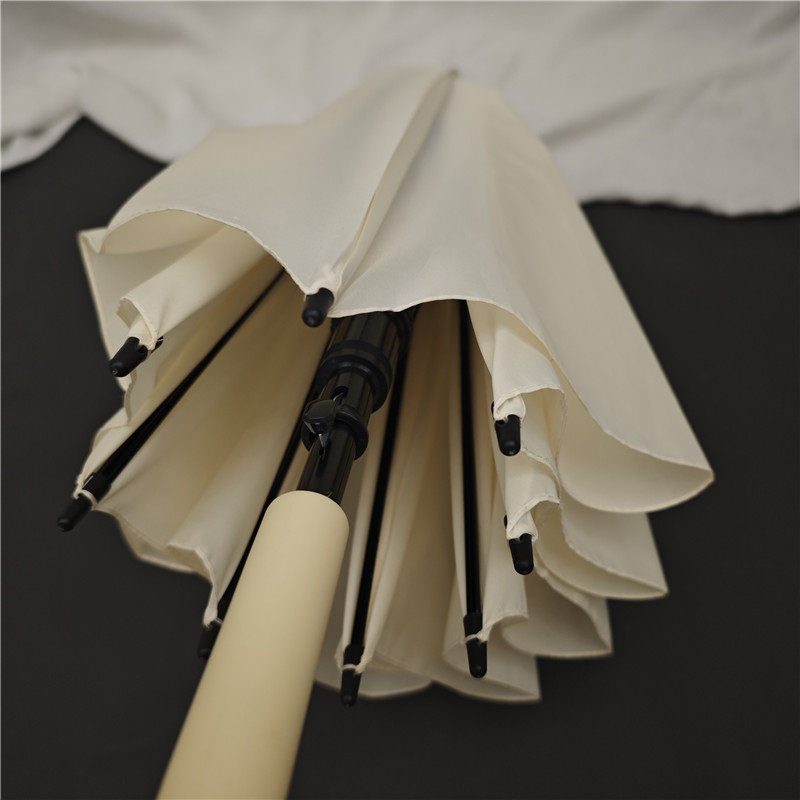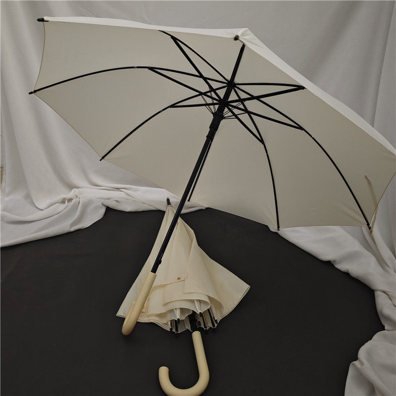 📚 治愈淡奶油黄色系~双龙骨强抗风自动长柄雨伞简约大弯勾舒服手柄