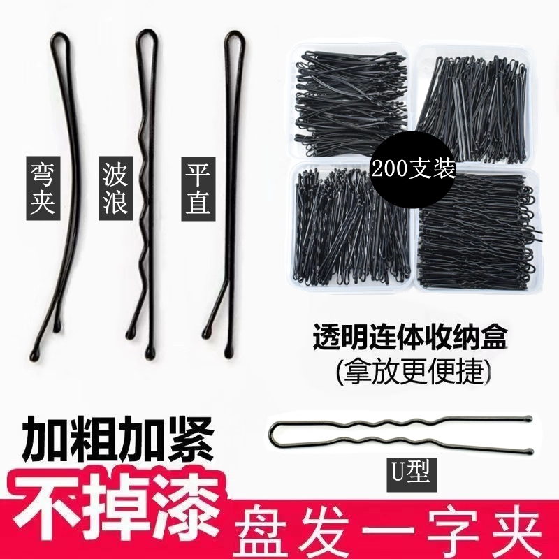 📚 黑色一字夹发夹韩国成人波浪夹小黑卡子头饰钢夹少女边夹发卡发饰
