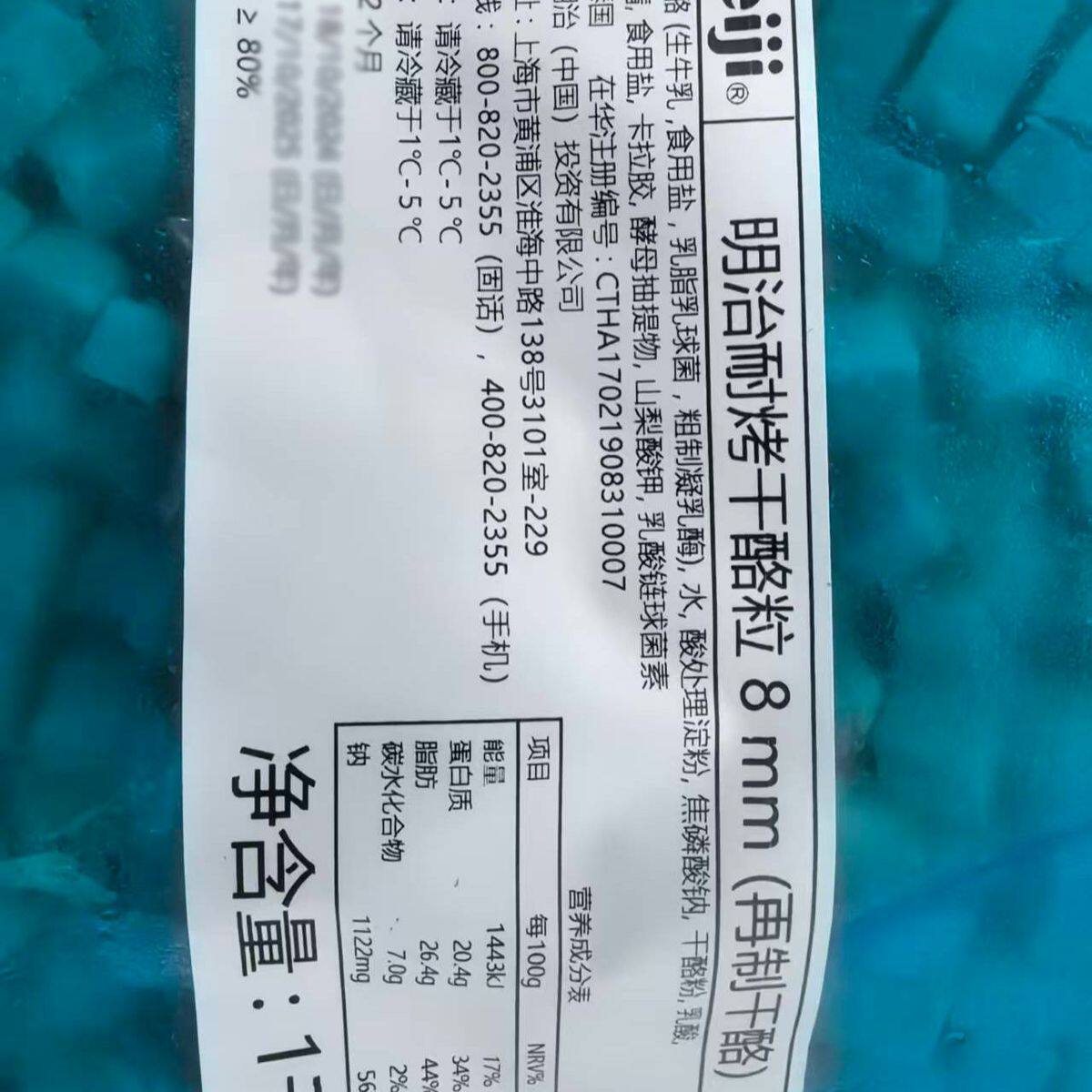 📚 明治高熔点奶酪丁1kg烘焙奶酪耐高温烘烤芝士粒