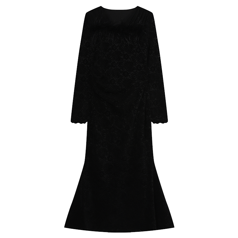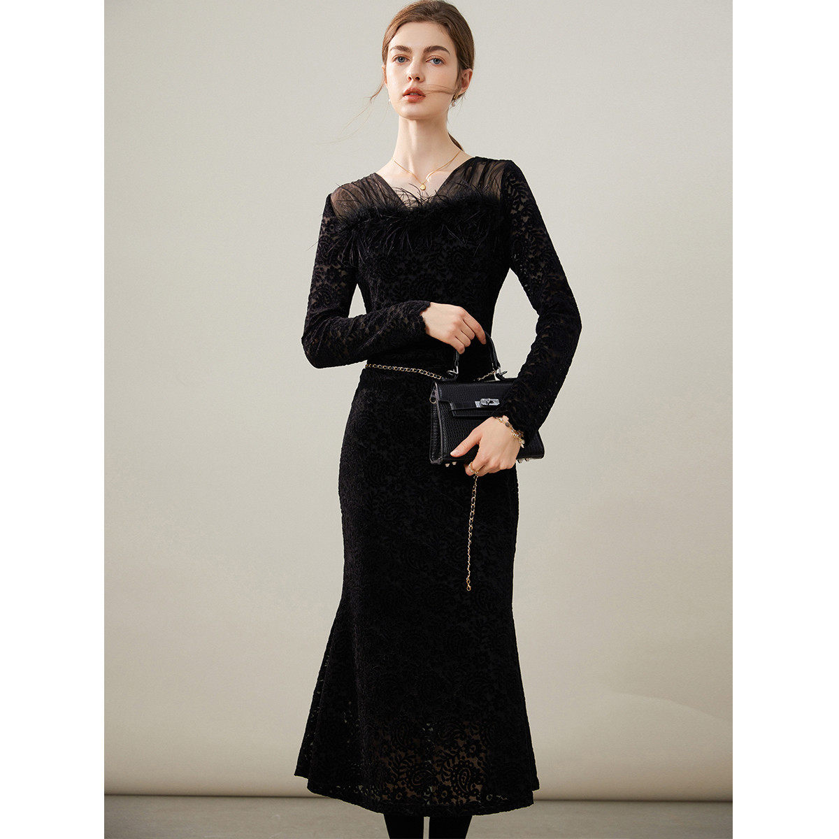 📚 【草莓粉丝专享】&白鹿语绒面蕾丝鱼尾裙拼接连衣裙女ZBX20036