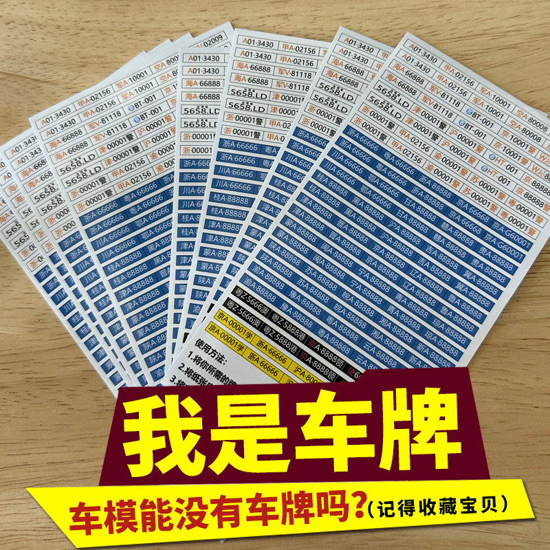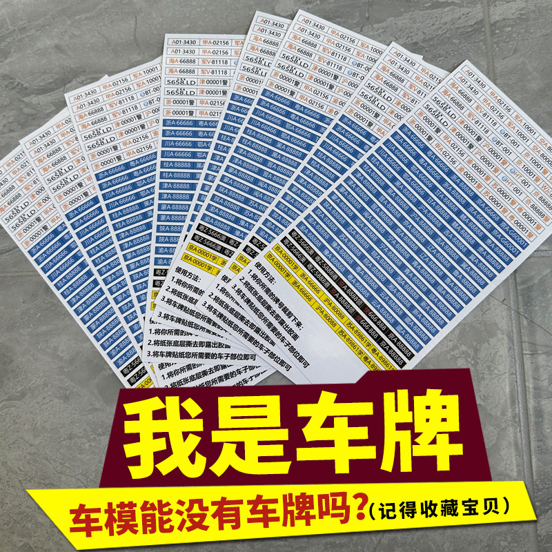 📚 车模汽车号牌合金车模儿童玩具车牌号 1:32模型贴纸车牌手动裁剪