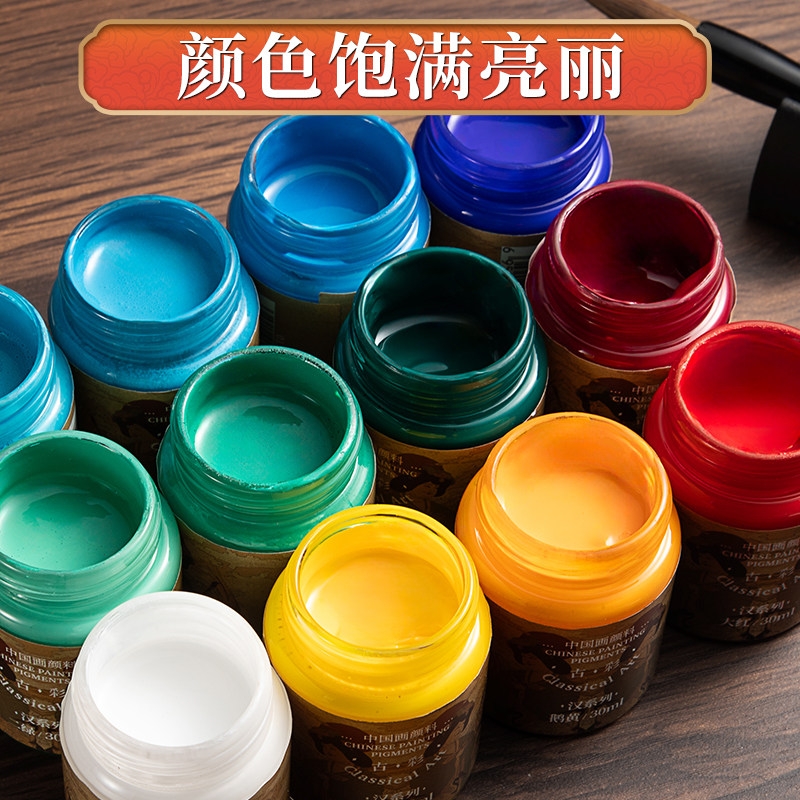 📚 鲁本斯国画颜料24色套装30ml专业全套水墨画矿物质颜料山水工笔画材料岩彩藤黄钛白花青高级传统中国画颜料