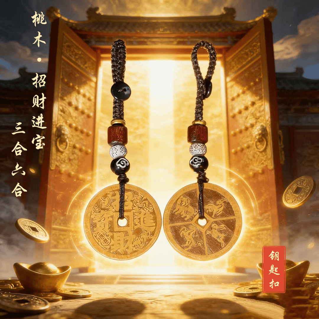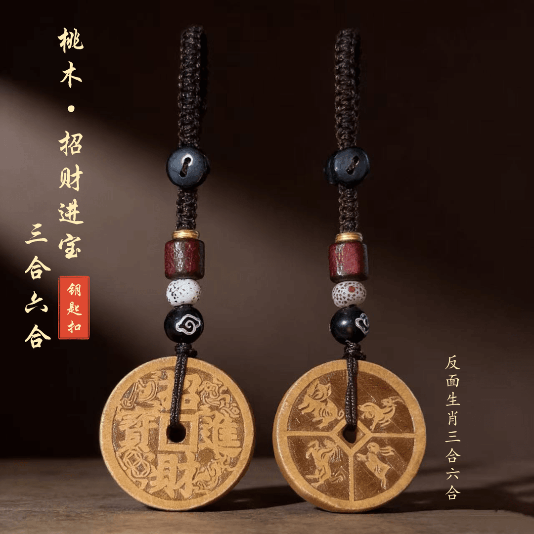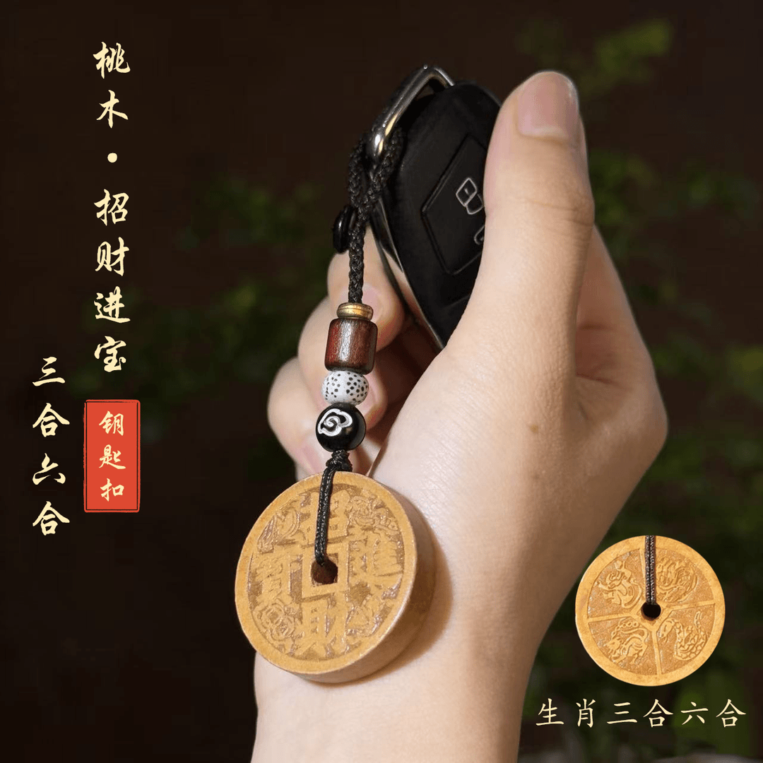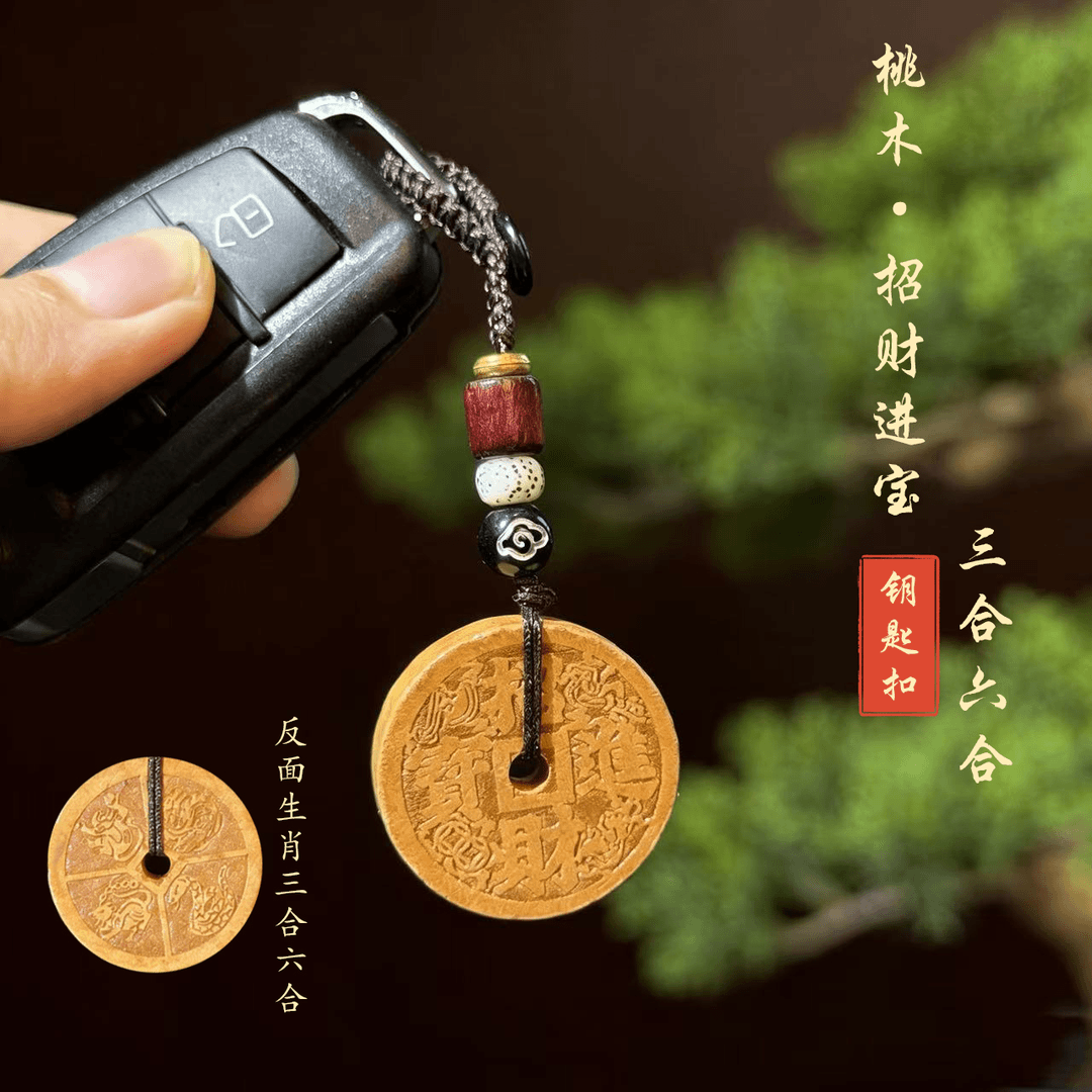 📚 臻品.三合六合山花钱桃木灵佑随身配扣驾车个人用品