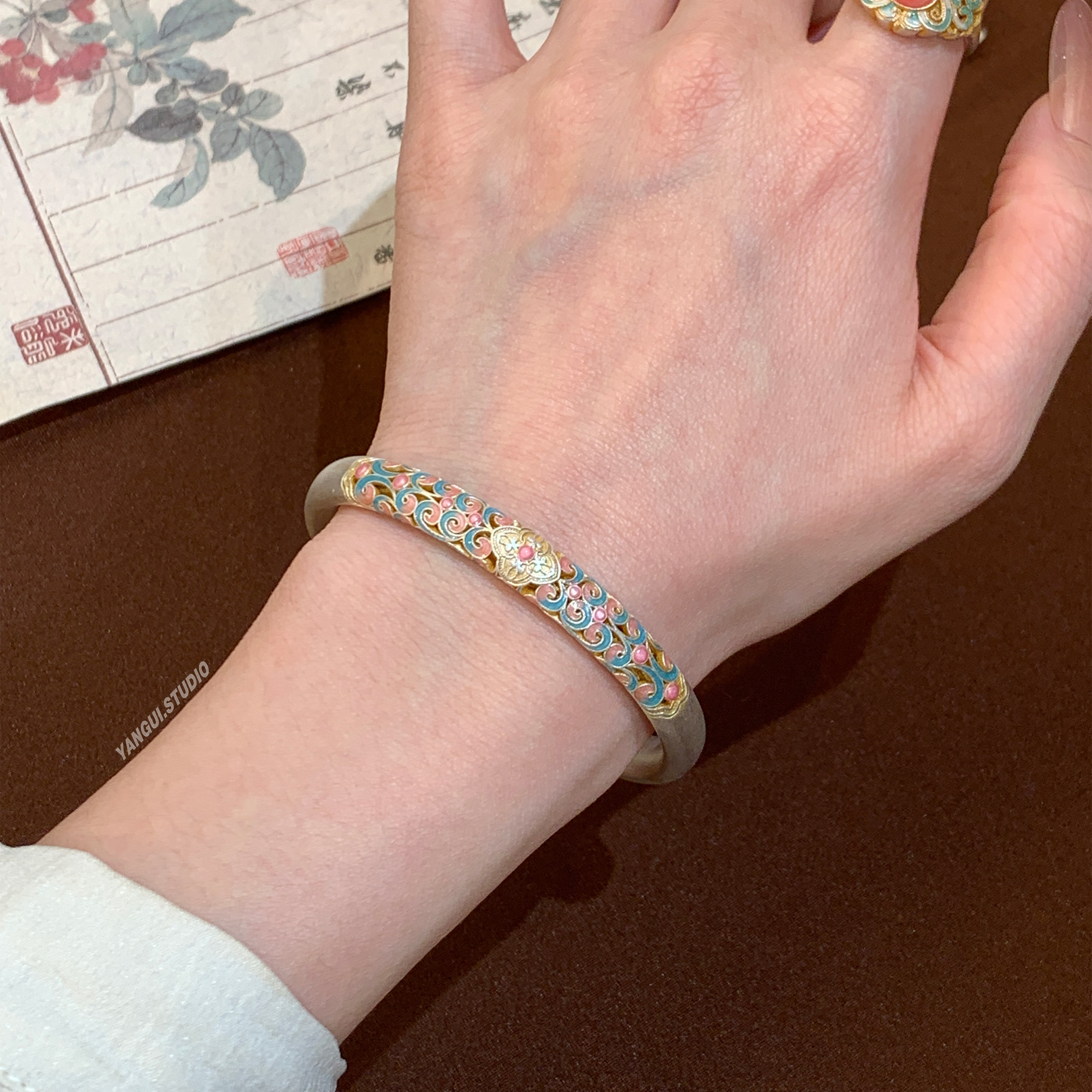 📚 Yangui燕归「椿蓝时」国风新中式重工足银999.9轻奢珐琅彩手镯女
