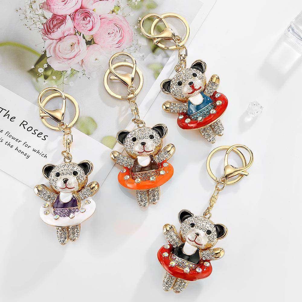 🎉亲们,今天我要跟大家分享一款超级可爱的宝贝——亚马逊创意包包挂件游泳圈熊公仔金属汽车镶钻钥匙扣小礼品!🎁