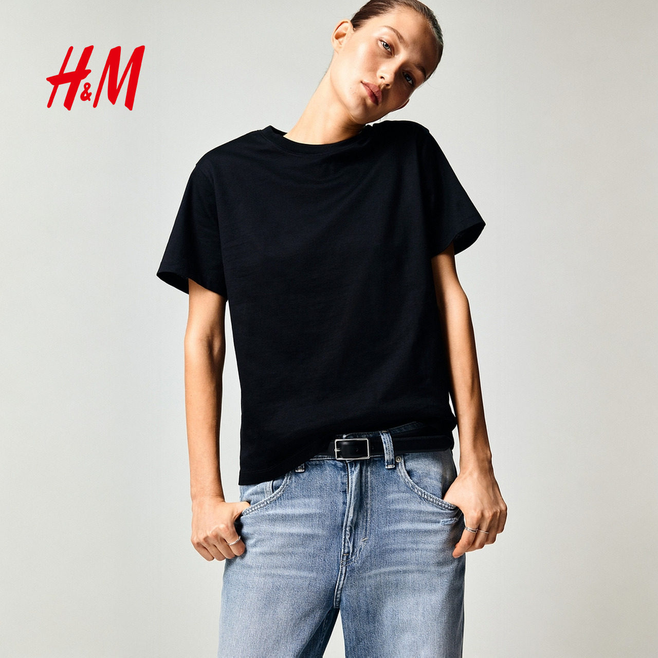 📚 HM女装T恤夏季宽松圆领柔软汗布棉质内搭短袖简约风T恤0963662