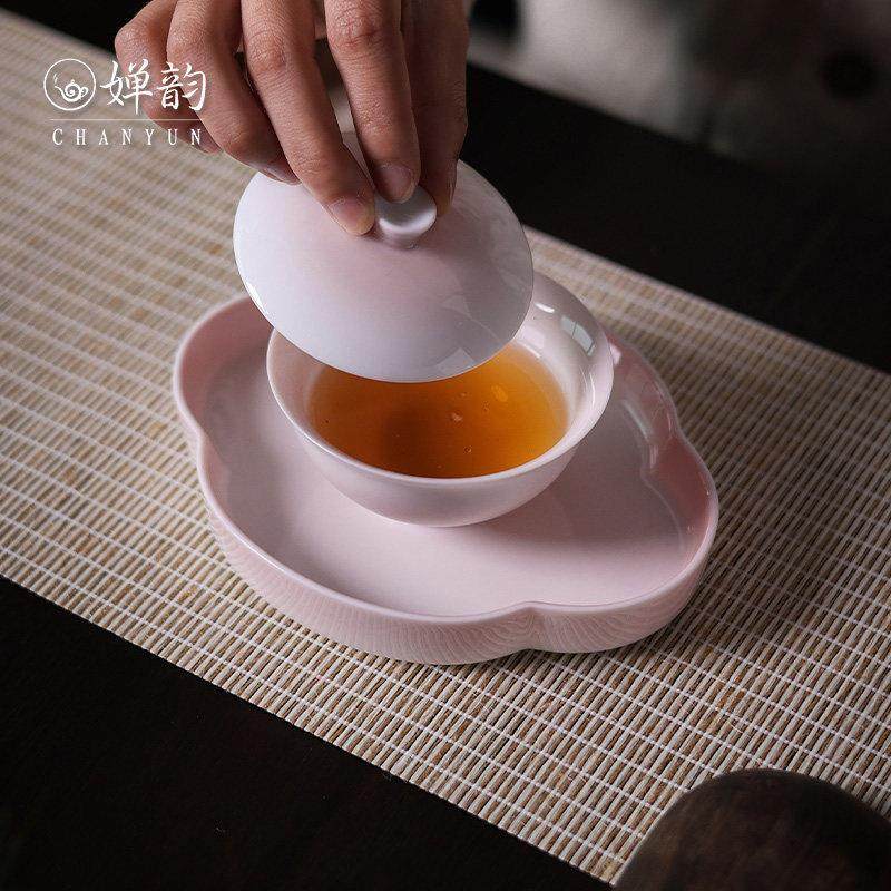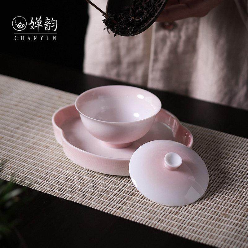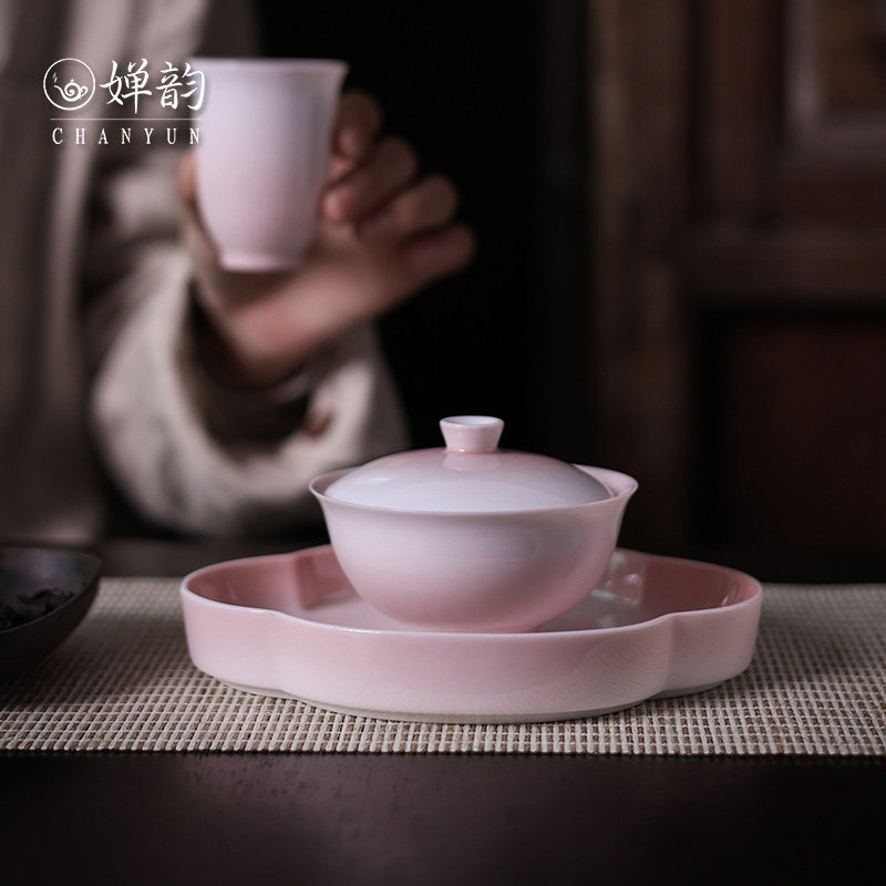 📚 婵韵斋居黄丽君渐变粉色元宝二才盖碗单个泡茶家用茶具小田月月